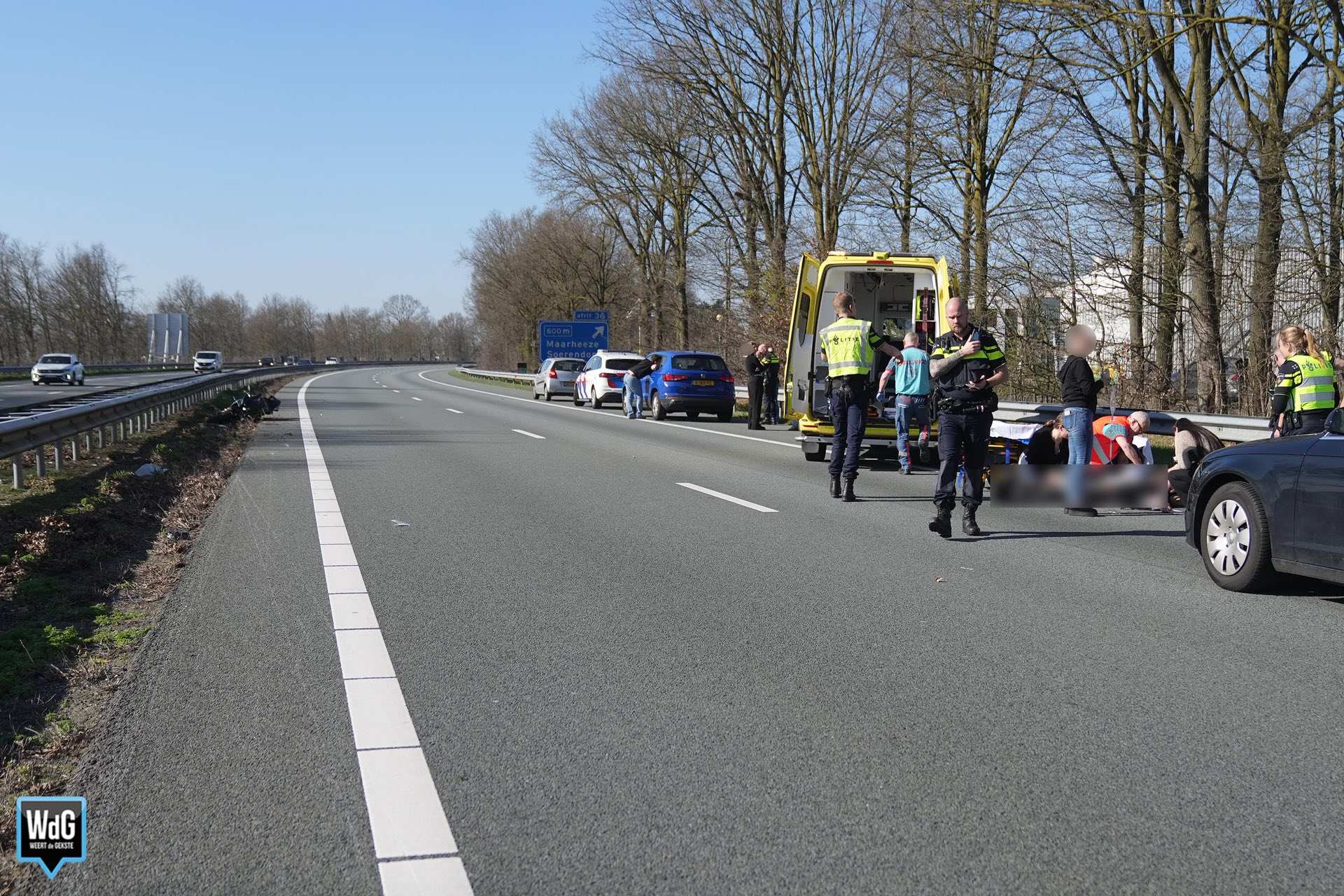 Maarheeze – De hulpdiensten zijn zaterdag rond 14.45 uur gealarmeerd vanwege een verkeersongeval op de snelweg A2 bij Maarheeze. Daarbij is een motorrijder ten val gekomen.