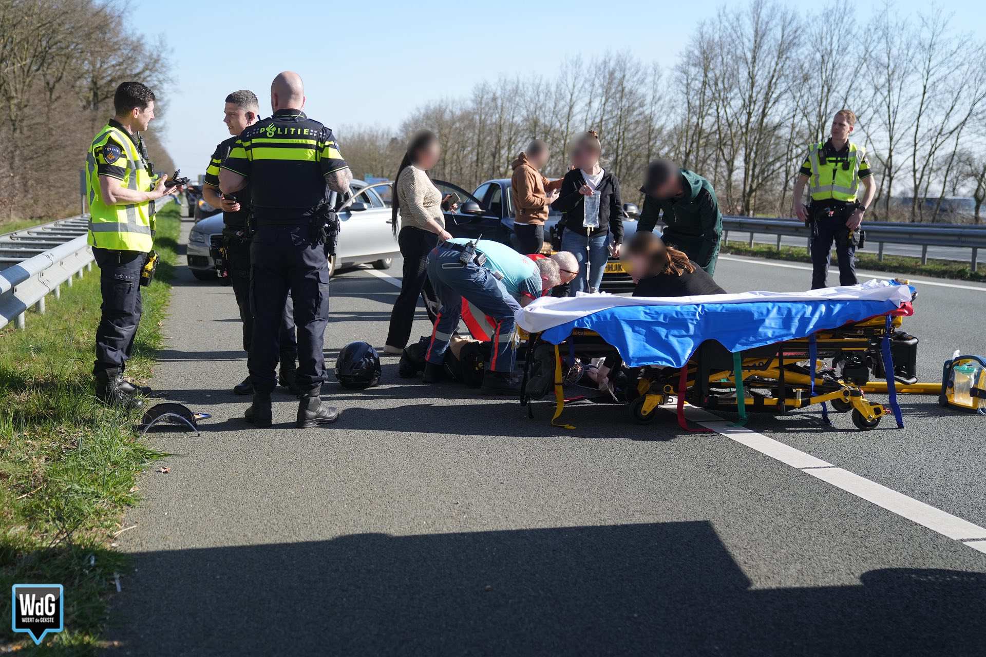 Voorbijgangers stopten om eerste hulp te verlenen. De motorrijder is vervolgens behandeld door het toegesnelde ambulancepersoneel. De politie sloot de snelweg in noordelijke rijrichting tijdelijk af. Hierdoor ontstond een file tot aan Weert-Noord.