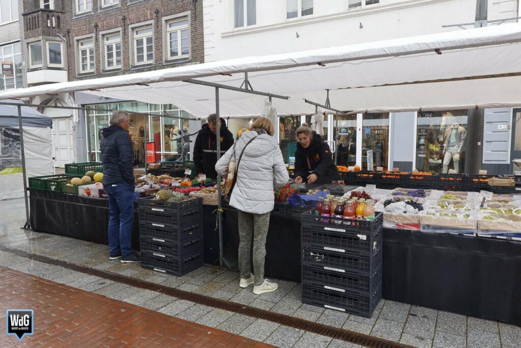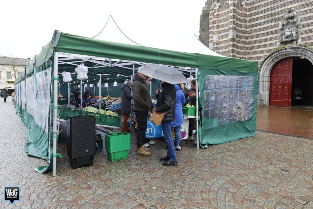 Ondanks het natte en grijze weer vond zaterdag toch gewoon de weekmarkt plaats in het centrum van Weert. De regen zorgde ervoor dat het duidelijk rustiger was dan op andere zaterdagen. Ook bleven enkele marktondernemers weg vanwege de slechte weersomstandigheden.