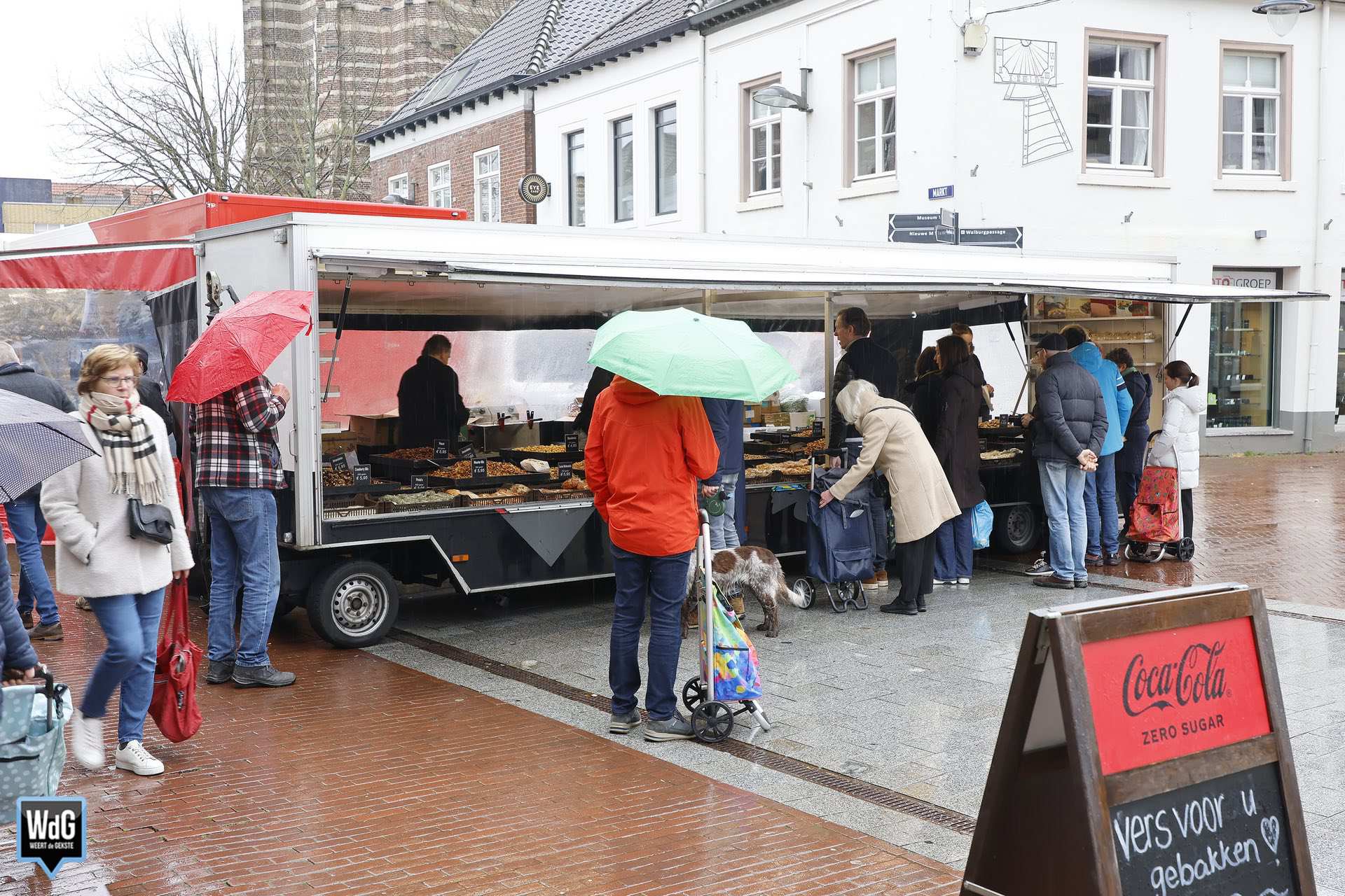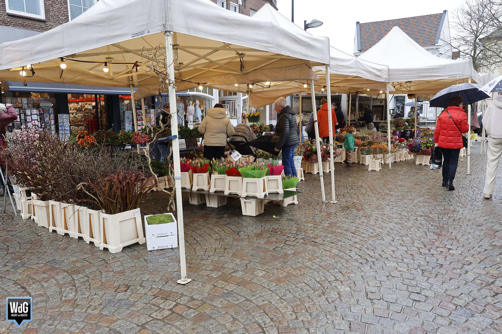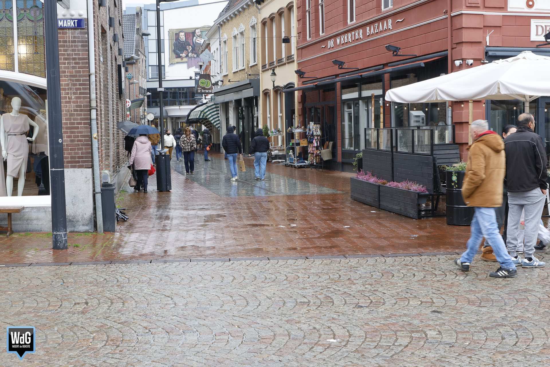 Ondanks het natte en grijze weer vond zaterdag toch gewoon de weekmarkt plaats in het centrum van Weert. De regen zorgde ervoor dat het duidelijk rustiger was dan op andere zaterdagen. Ook bleven enkele marktondernemers weg vanwege de slechte weersomstandigheden.