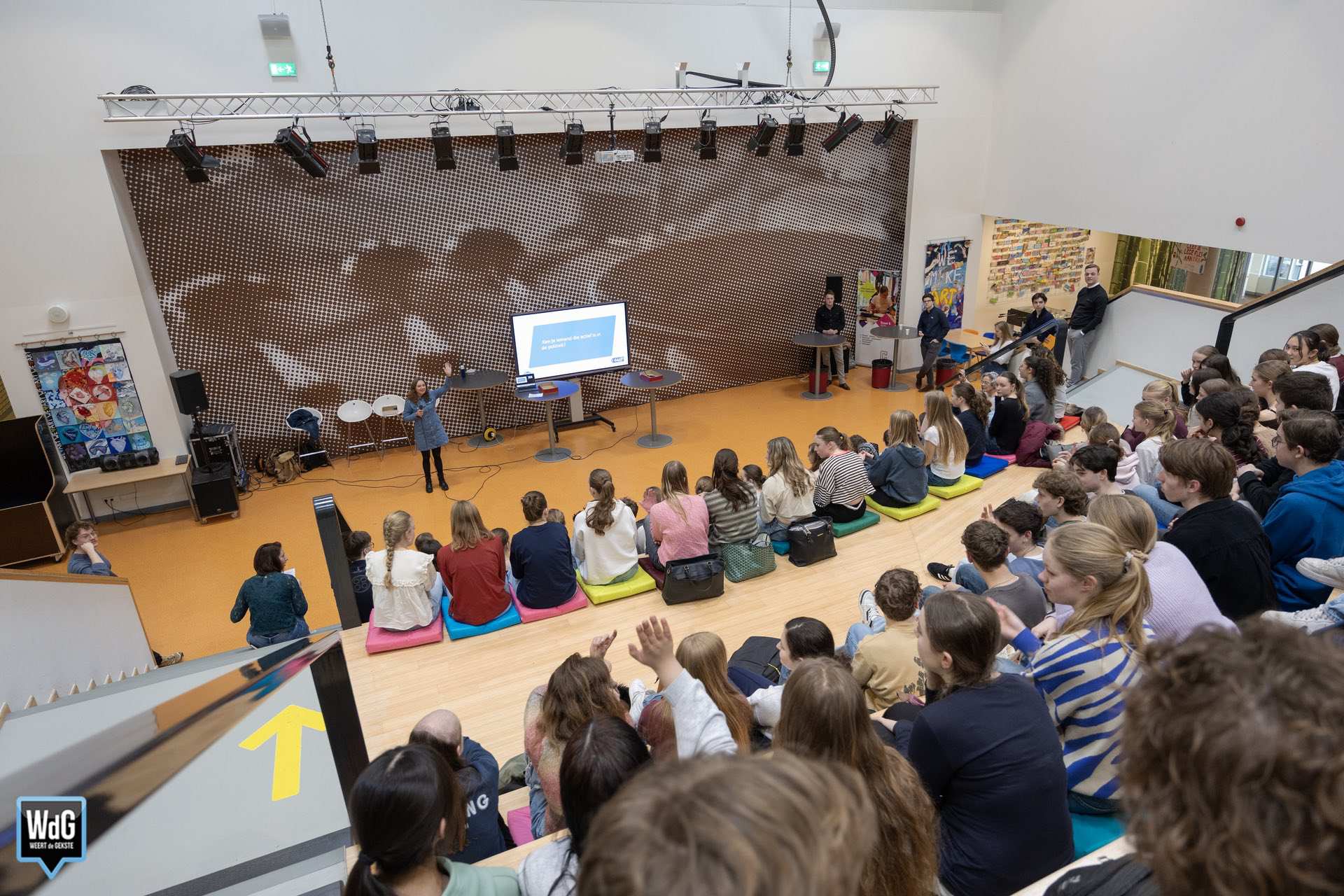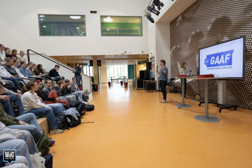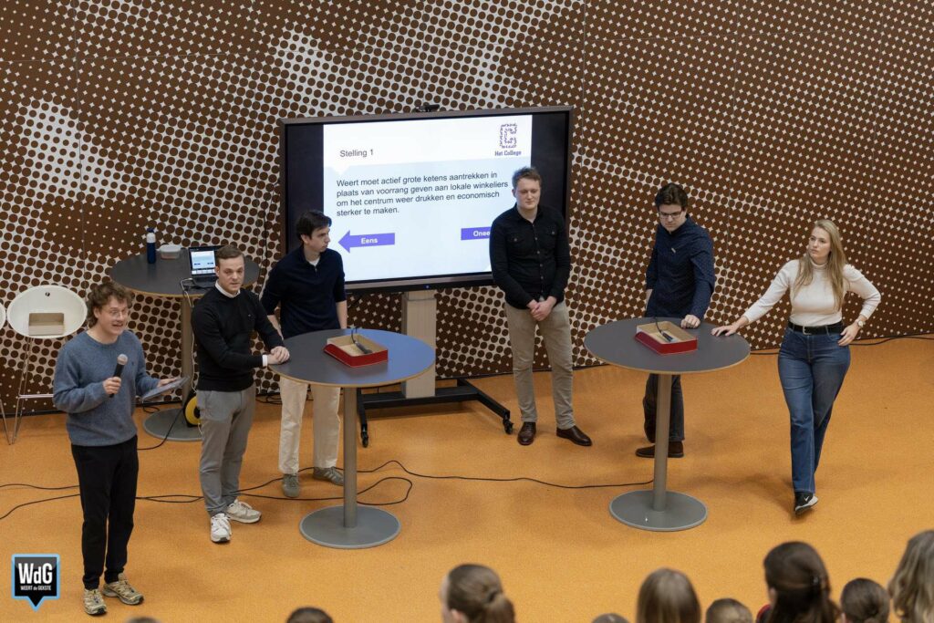 Leerlingen van Het College in Weert kregen vrijdag 13 maart de kans om lokale (kandidaat-)raadsleden vragen voor te leggen tijdens een verkiezingsdebat op school. Tijdens het debat gingen jonge kandidaten van verschillende politieke partijen met elkaar in gesprek over onderwerpen die spelen in de gemeente Weert. Ook de leerlingen in de zaal deden actief mee door vragen te stellen en hun mening te geven.