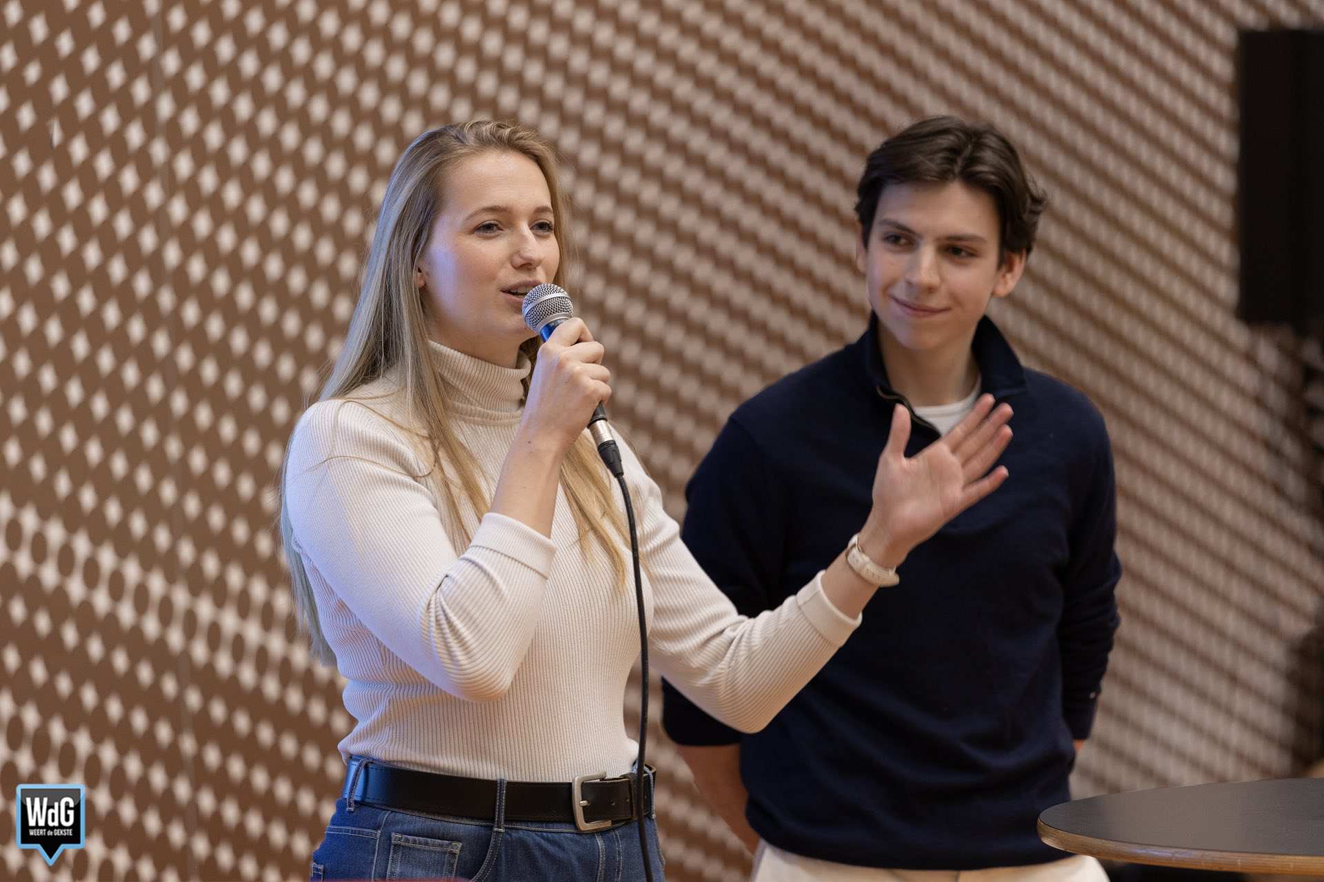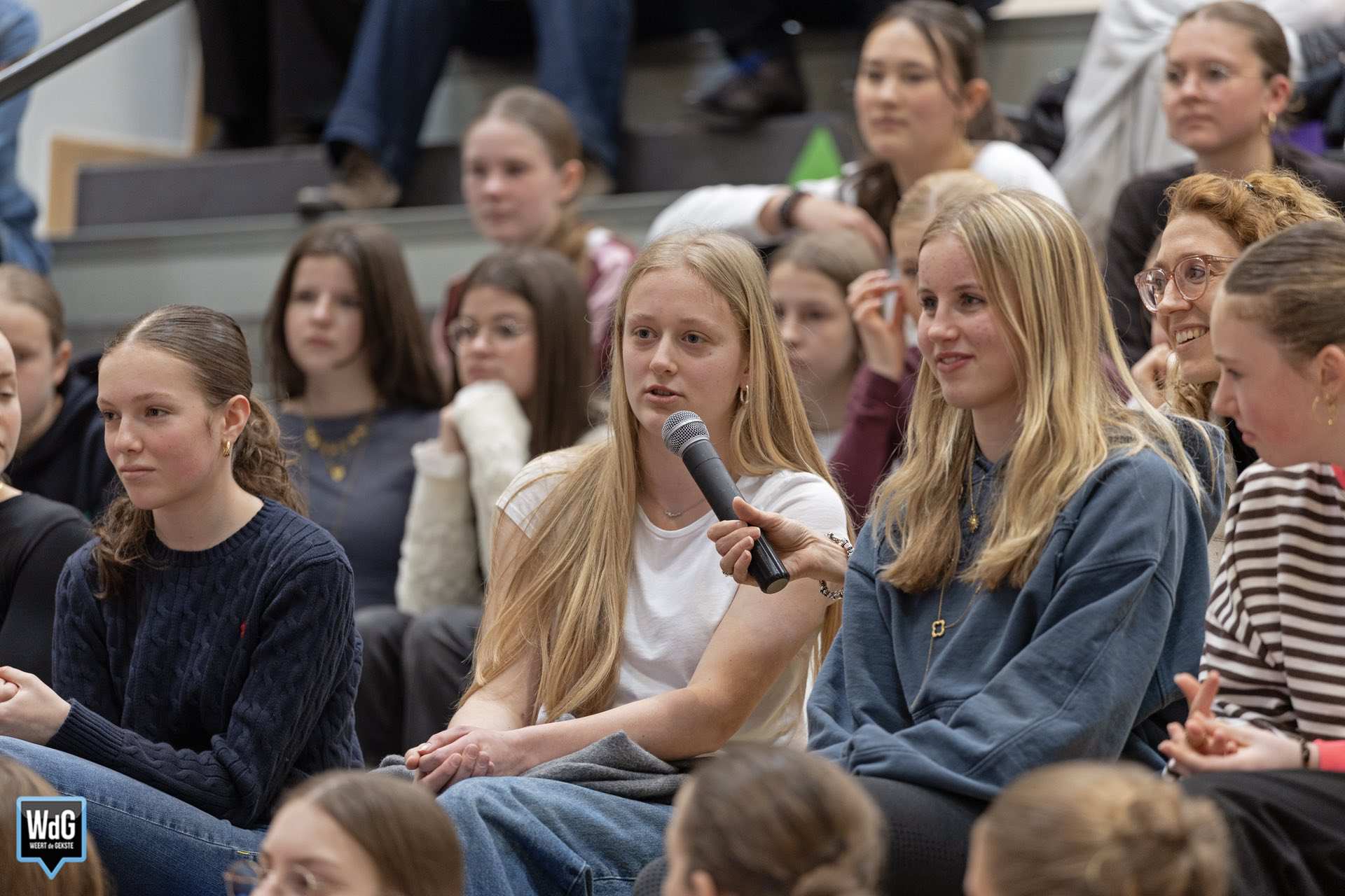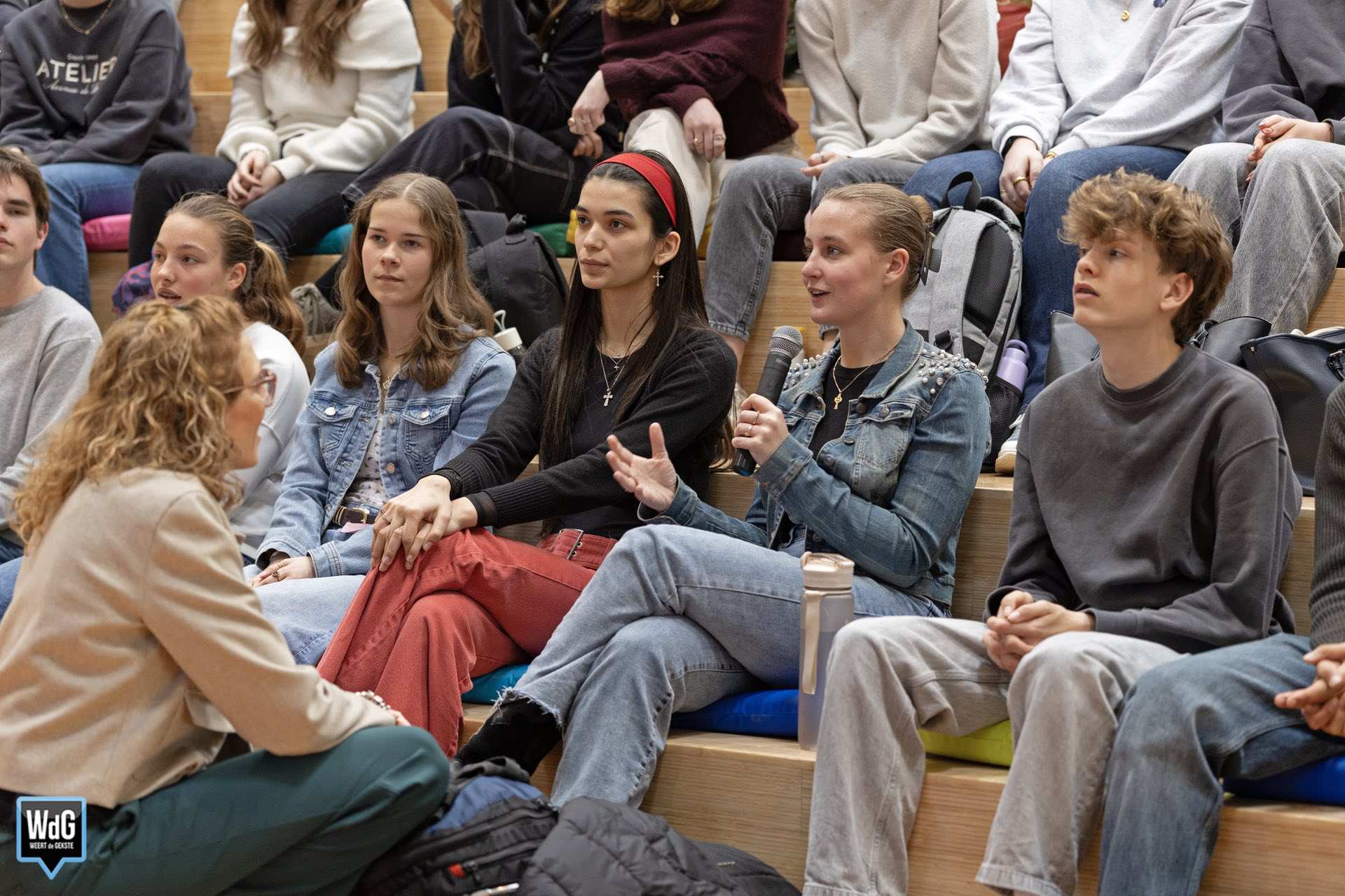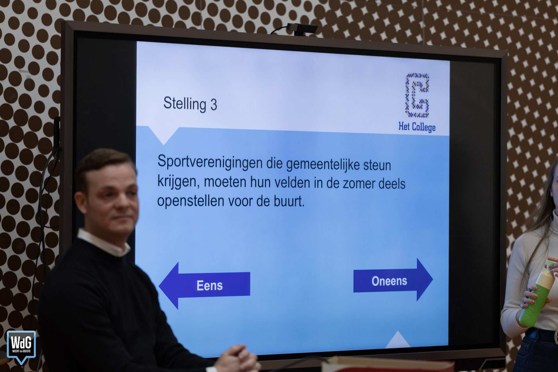 Om de betrokkenheid van jongeren te peilen werd het publiek ook vragen gesteld. Zo werd gevraagd wie iemand persoonlijk kent die actief is in de politiek. Ook wilden de organisatoren weten wat de leerlingen van politiek vinden en of zij zichzelf ooit in de politiek zien. De leerlingen konden hun mening aangeven door de reageren op stellingen.