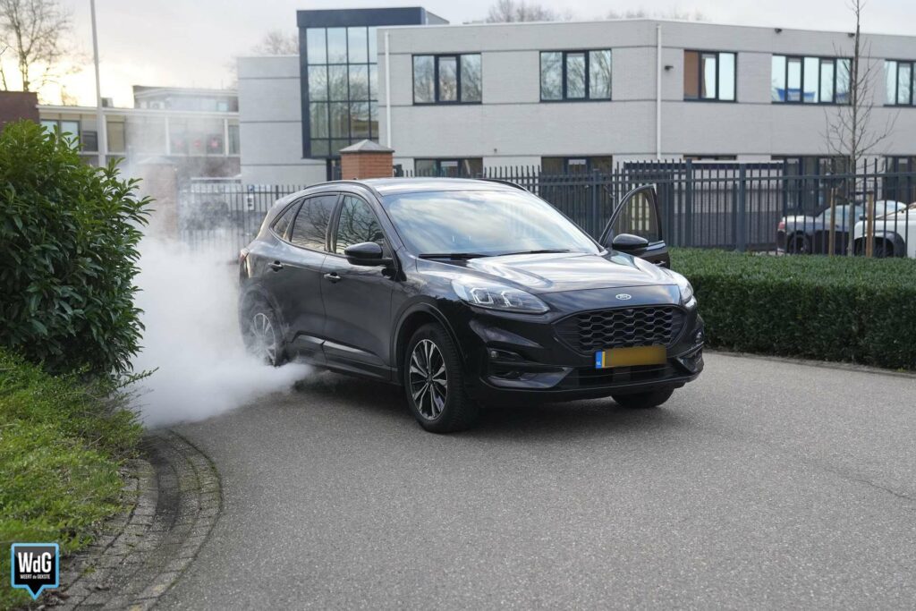 Voor dit type auto is een terugroepactie actief. In een of meer cellen van de hoogspanningsaccu in deze Ford Kuga kan interne kortsluiting ontstaan. Daardoor kan de aandrijving uitvallen, wat de kans op een ongeval vergroot. Daarnaast kan de accu oververhit raken en brand veroorzaken. Of dat nu ook de oorzaak is, is niet bekend, maar er wordt rekening mee gehouden.