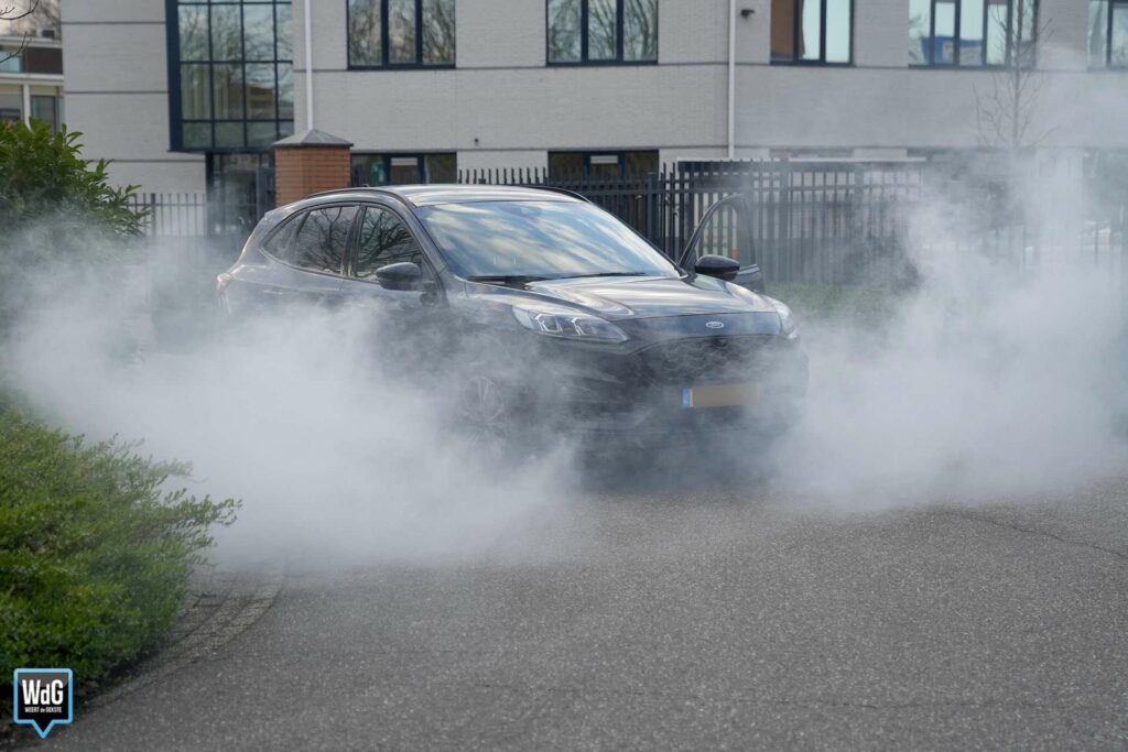 De rook kwam onder een hybride auto vandaan. De bestuurder was net vertrokken van zijn werk toen hij de gevolgen van het technische mankement ontdekte. Hij zette de auto aan de kant en bracht zichzelf in veiligheid, waarna de brandweer werd gealarmeerd. De auto bleef gespaard van vlammen.