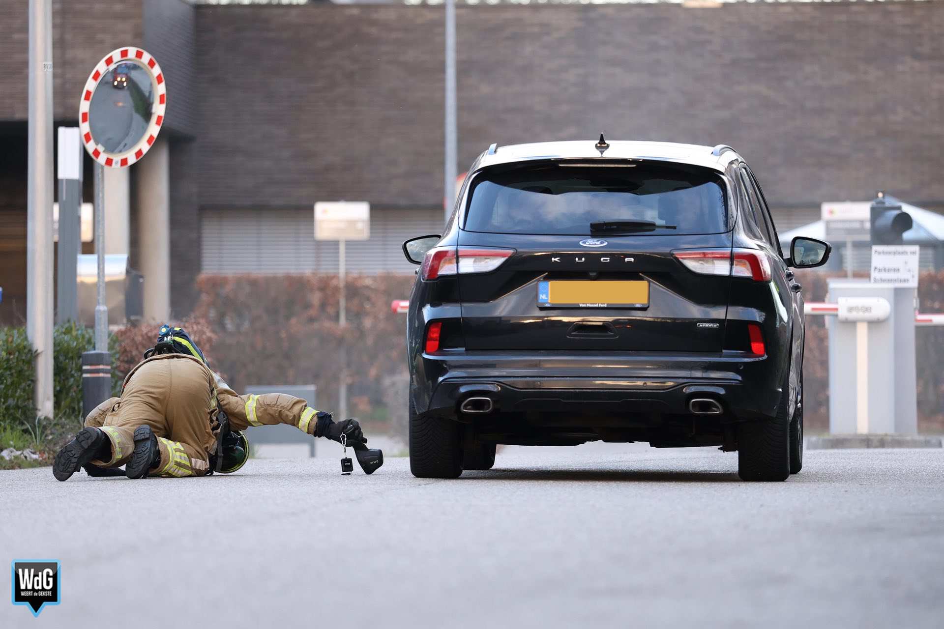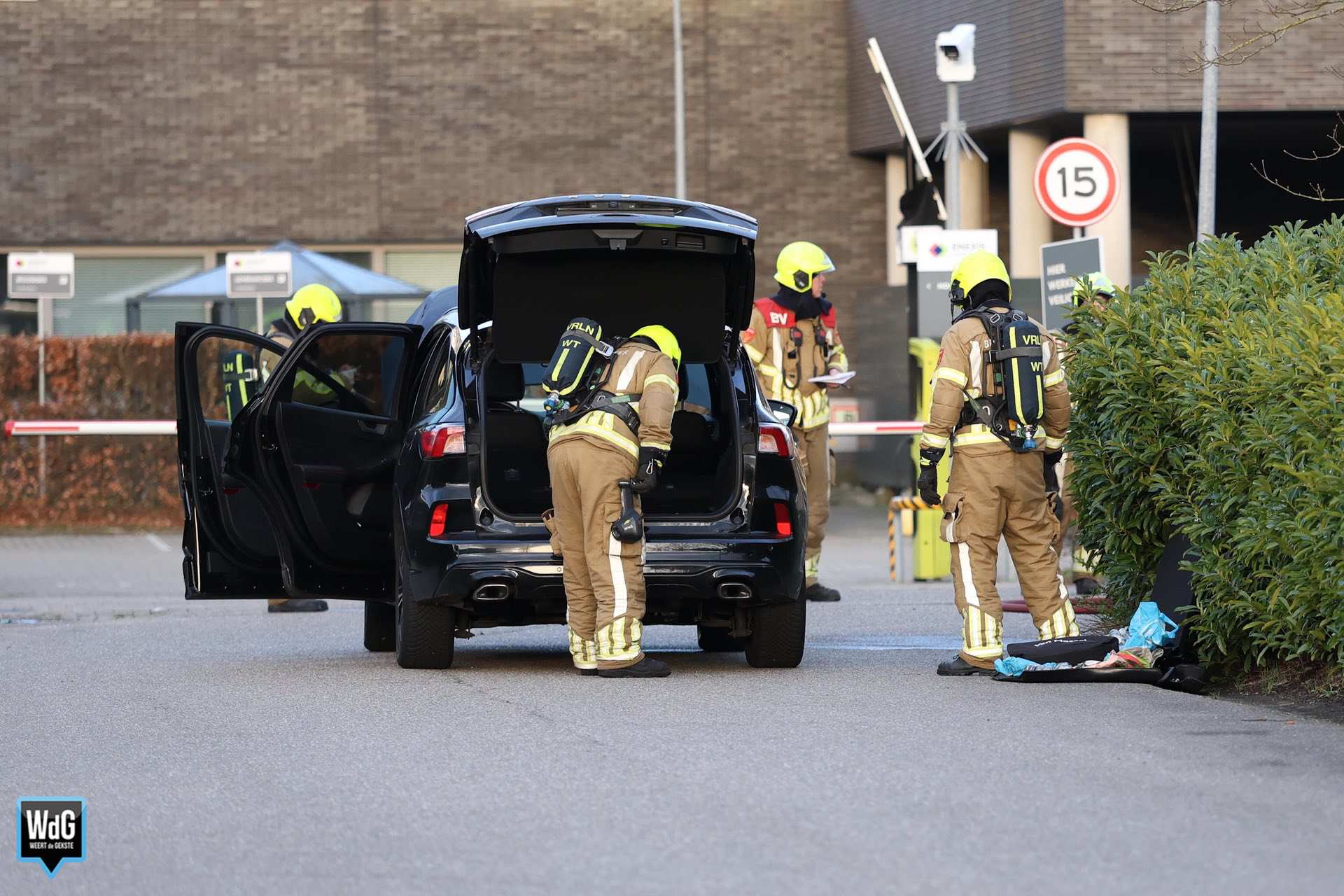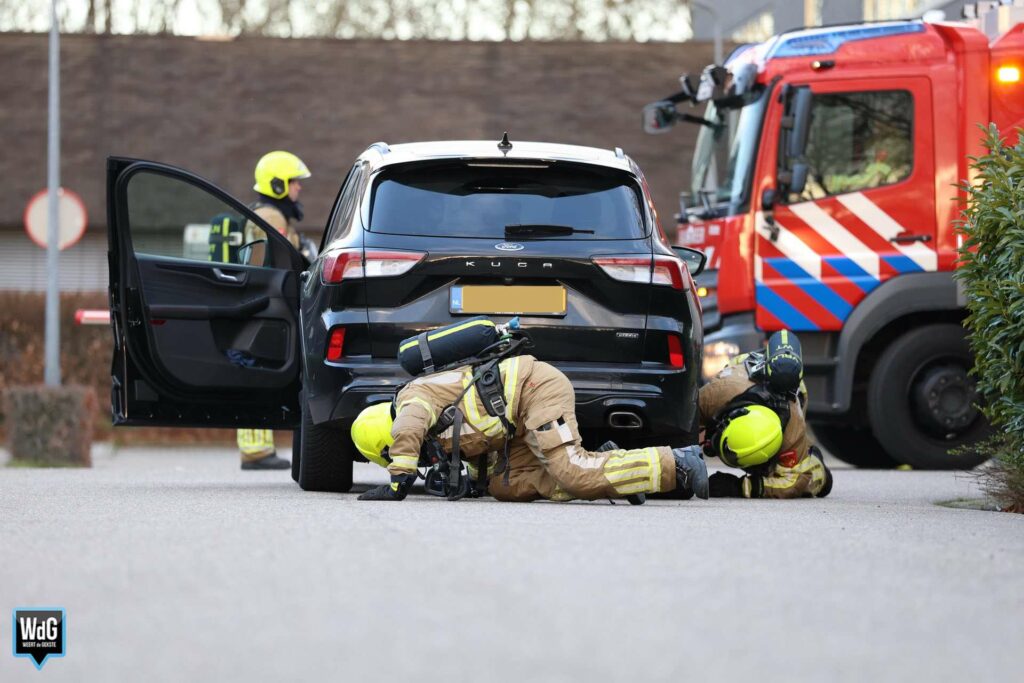 Toen de brandweer arriveerde, hield men er rekening mee dat er mogelijk een mankement was met de accu van de hybride auto. De rook kwam met tussenpozen onder het voertuig vandaan en had een sterke geur. Uit voorzorg werd afstand gehouden van het voertuig.