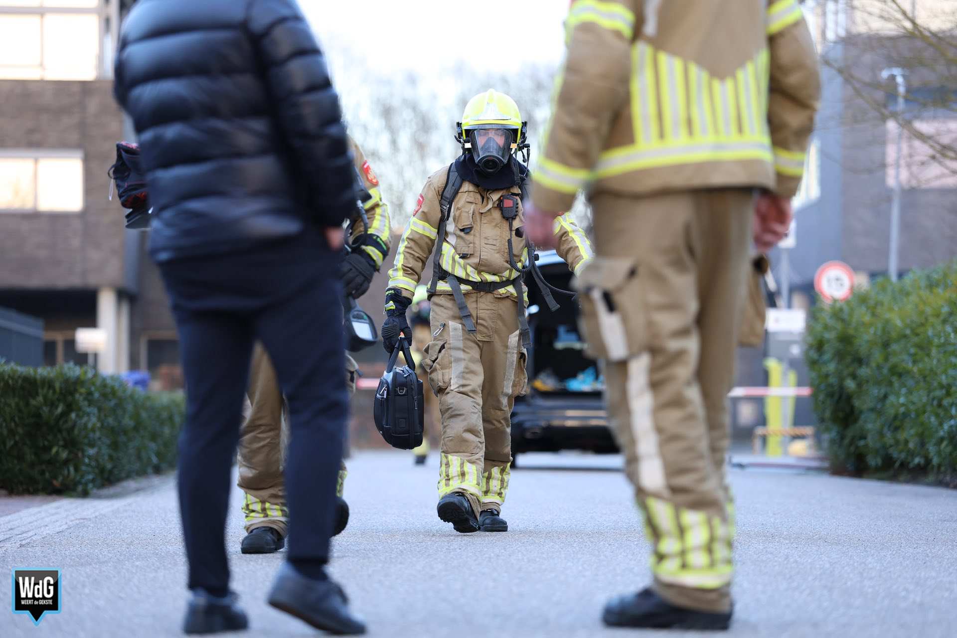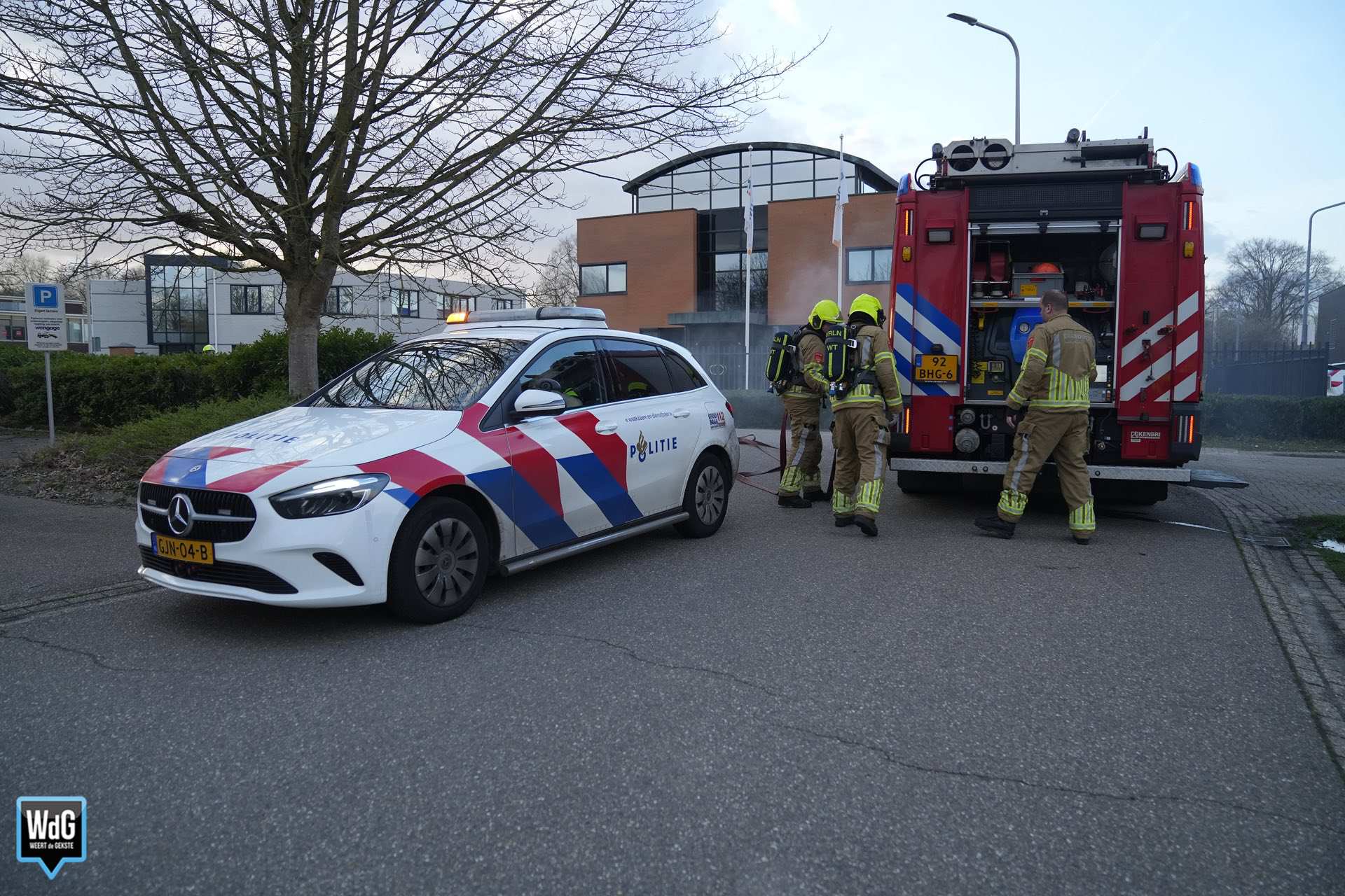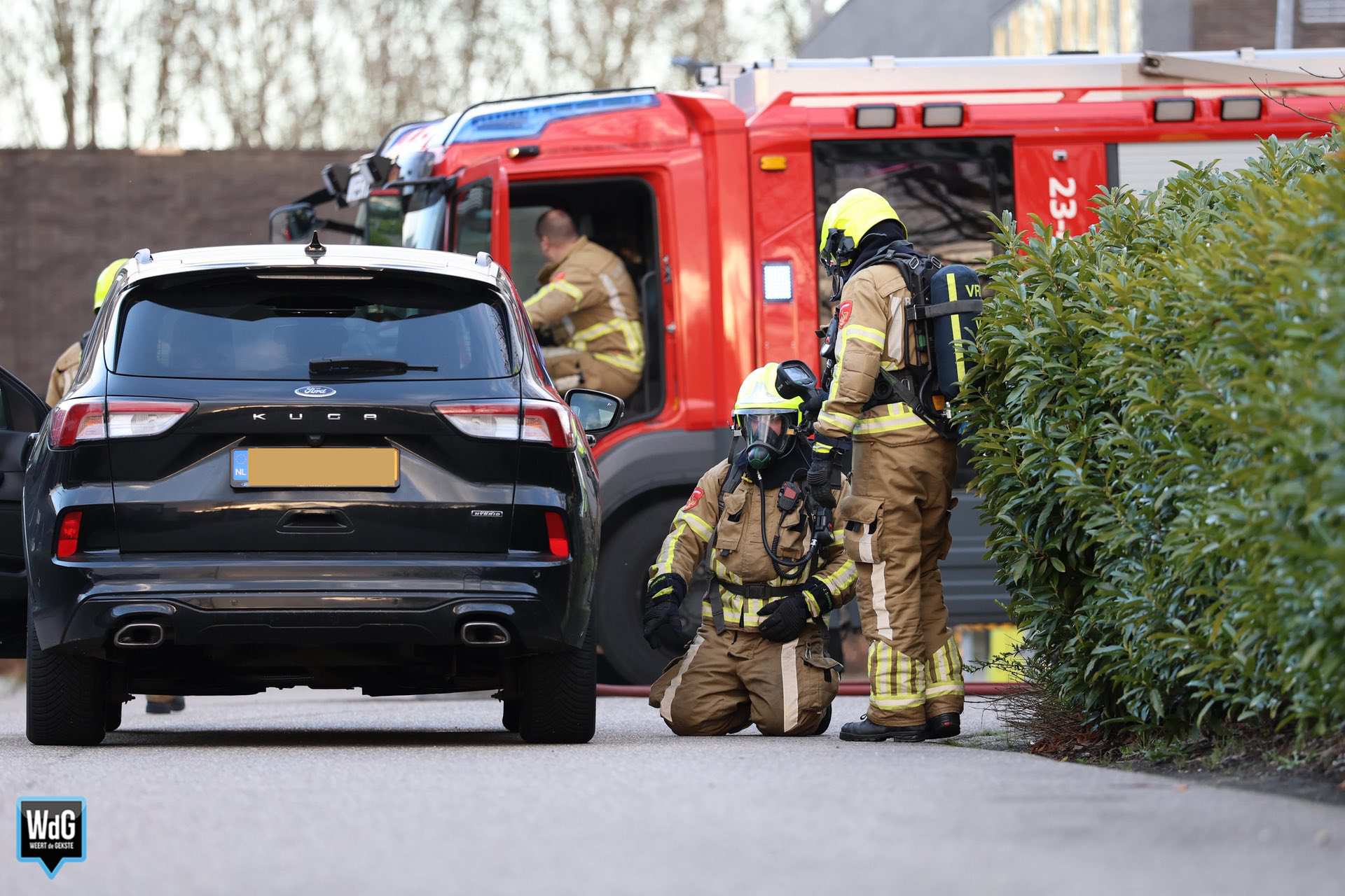 Toen de brandweer arriveerde, hield men er rekening mee dat er mogelijk een mankement was met de accu van de hybride auto. De rook kwam met tussenpozen onder het voertuig vandaan en had een sterke geur. Uit voorzorg werd afstand gehouden van het voertuig.