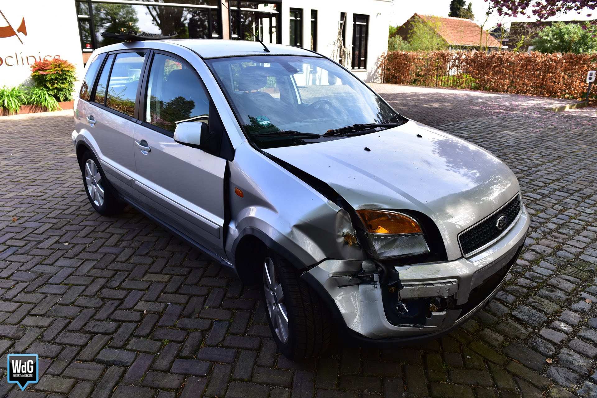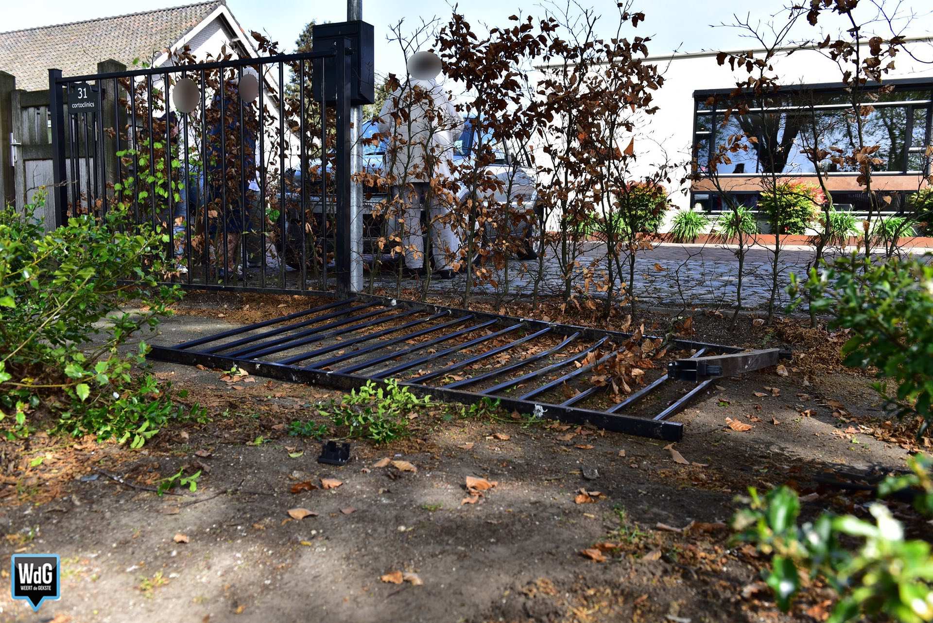 De bestuurster bleef ongedeerd, maar werd wel binnen in de kliniek opgevangen. Een voorbijgangster die haar hond uitliet, had geluk dat zij het voertuig net op tijd was gepasseerd.