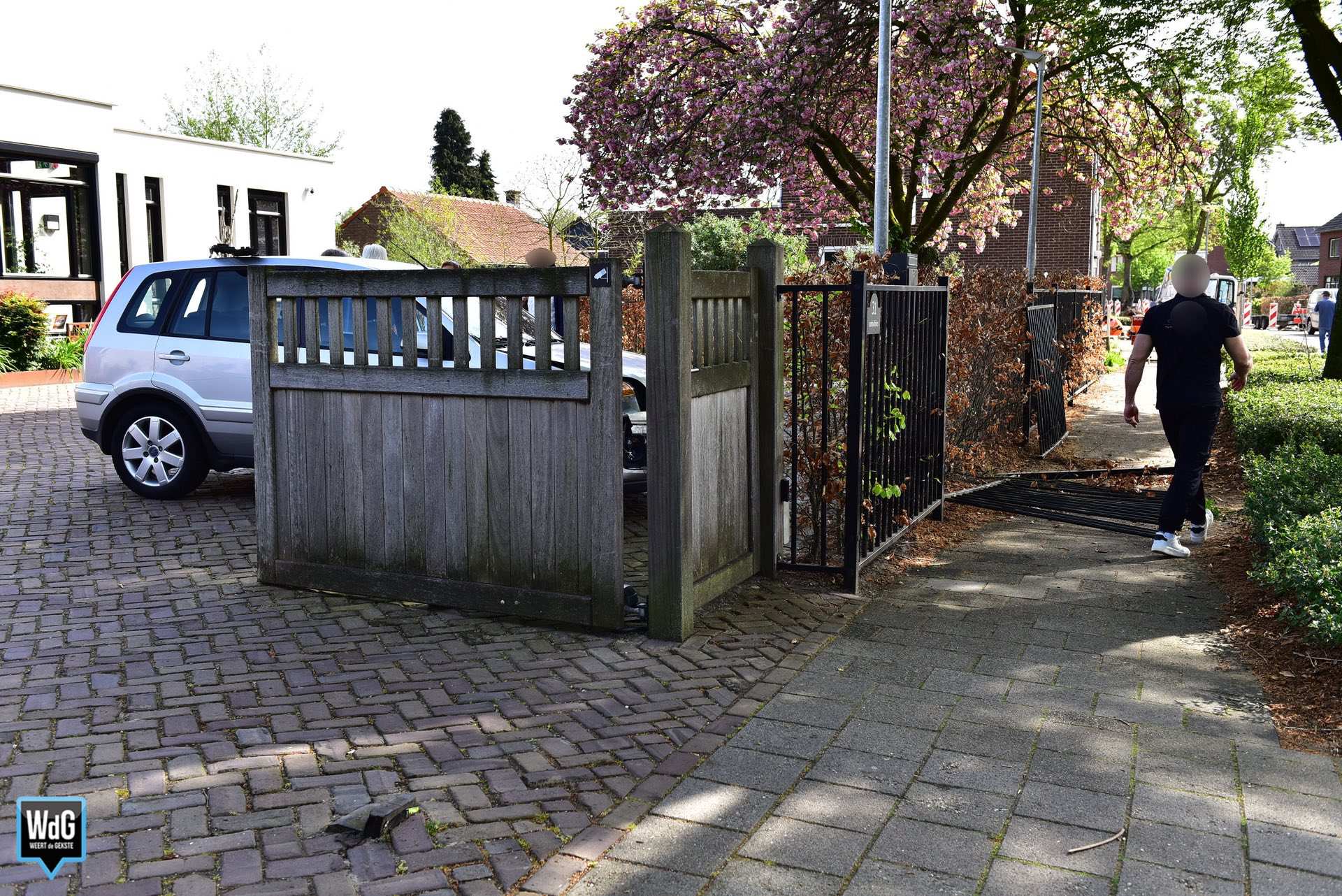 De auto en het hekwerk raakten beschadigd.