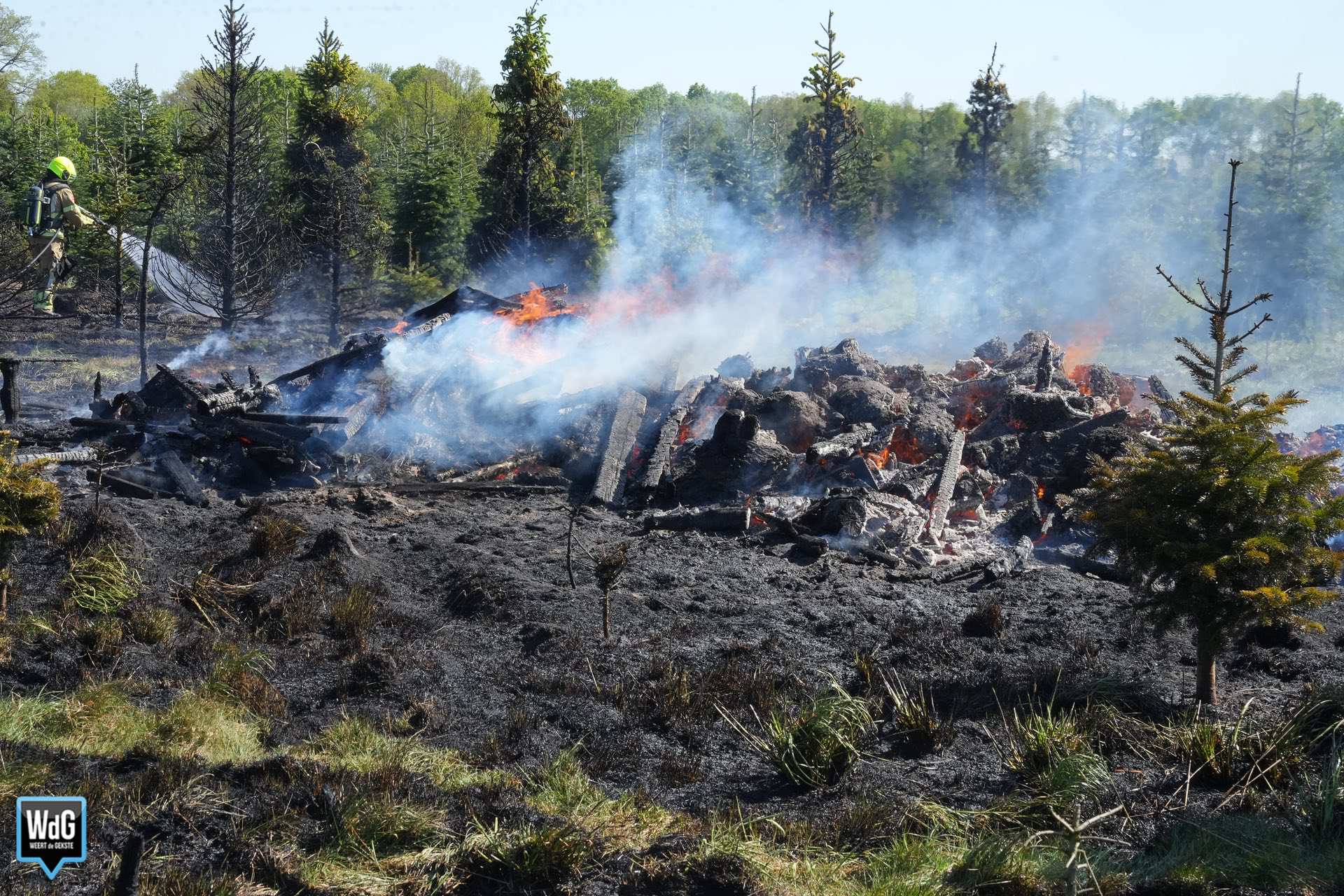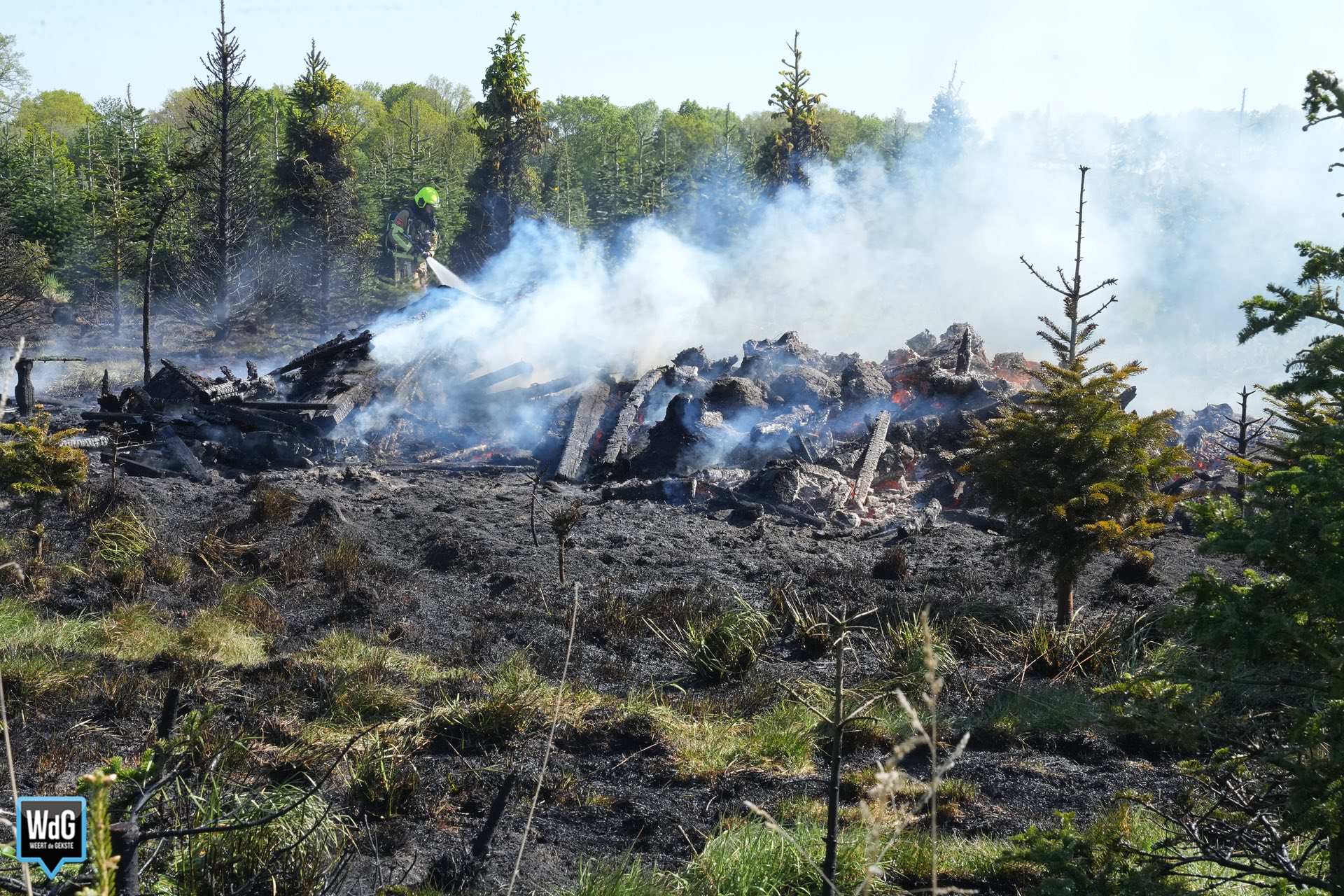 De brandweer uit Ittervoort en Roggel kwamen ter plaatse om het vuur te bestrijden. Vermoedelijk is de brand ontstaan door een stookvuur om hout te verbranden, dat door de harde wind uit de hand liep. Ook naaldbomen in de directe omgeving vatten vlam.