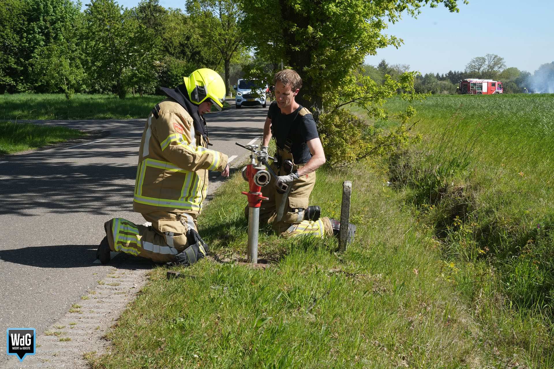 De brandweer rukte met twee tankautospuiten uit om de brand te blussen. Ook de politie kwam ter plaatse en doet onderzoek naar de oorzaak.