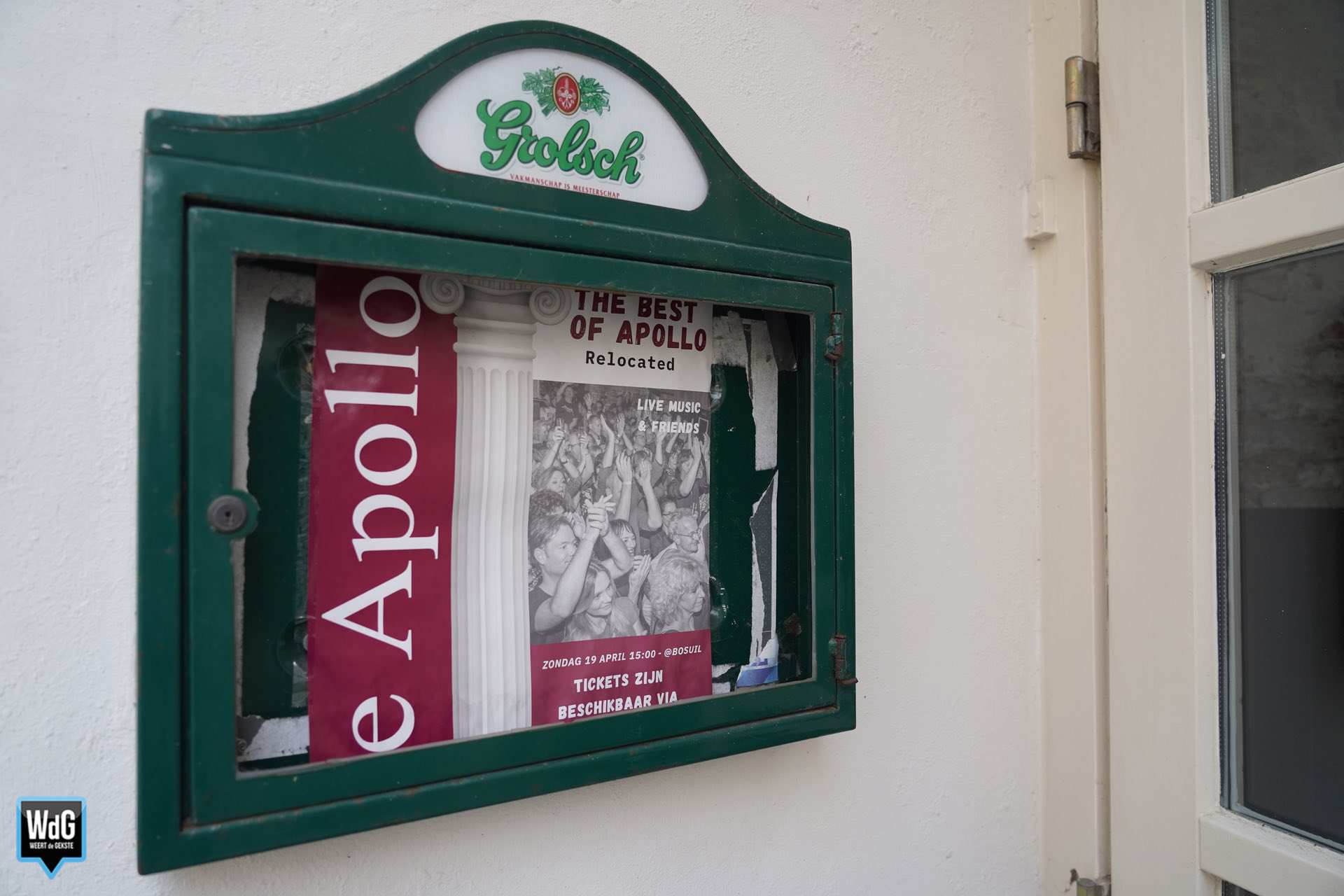 Nicky: “We hebben maar liefst 45 muzikanten die deelnemen; allemaal uit de tijd dat we hier zelf optredens organiseerden. We hebben een dagvullend programma; van 3 uur ’s middags tot 9 uur ’s avonds”. “We verwachten zo’n 500 mensen, zoveel kaarten zijn er op dit moment verkocht. Dus het wordt heel gezellig”, vult Rolf aan. Een overzicht van alle bands en artiesten die zondag zullen optreden tijdens ‘Apollo Relocated’ vind je in een eerder gepubliceerd bericht.