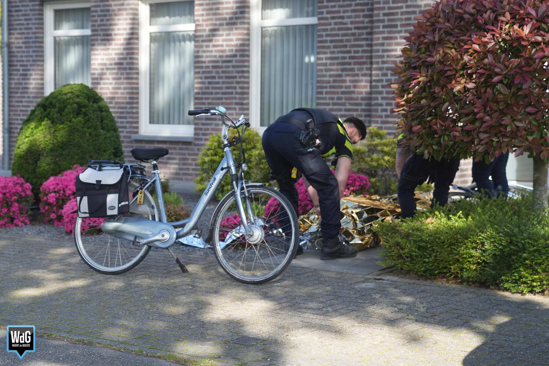 Een fietsster kwam ten val en raakte daarbij lichtgewond. Een voorbijgangster en een buurtbewoner schoten te hulp. Kort daarna arriveerde de politie, die de vrouw een reddingsdeken omlegde.