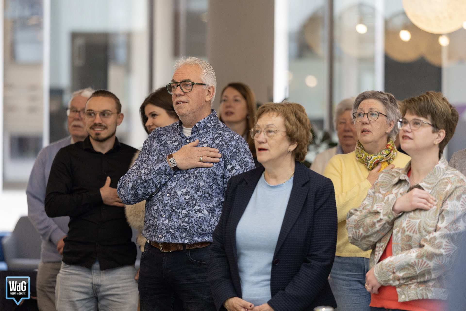 Na het officiële moment werd gezamenlijk het Wilhelmus gezongen. Aansluitend werden de glazen geheven met een oranje drankje. Daarna was er volop gelegenheid om de gedecoreerden persoonlijk te feliciteren.