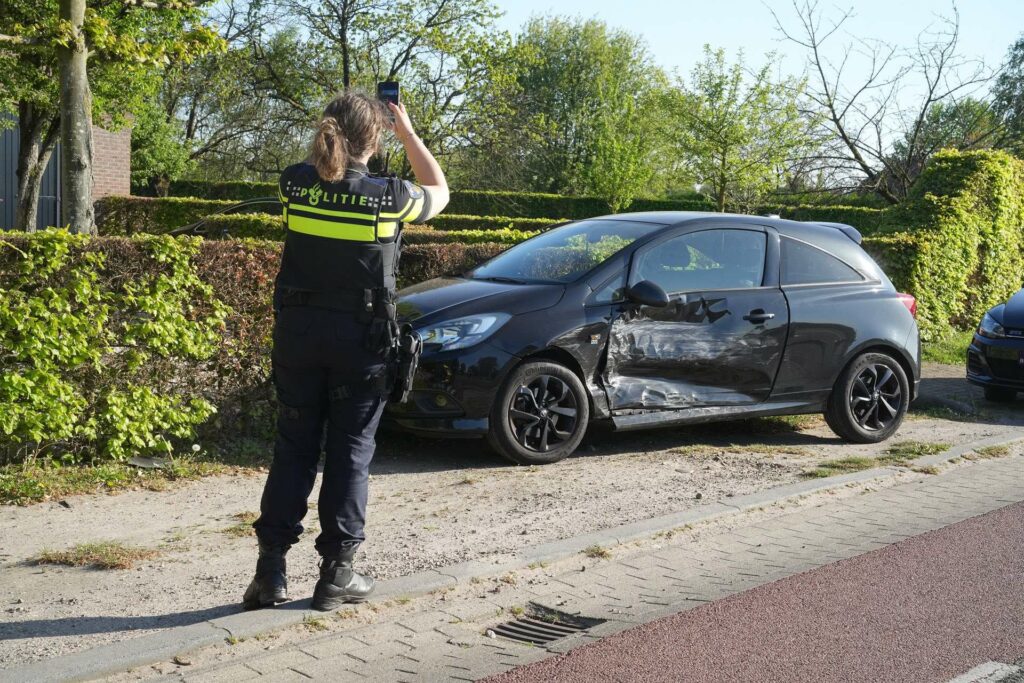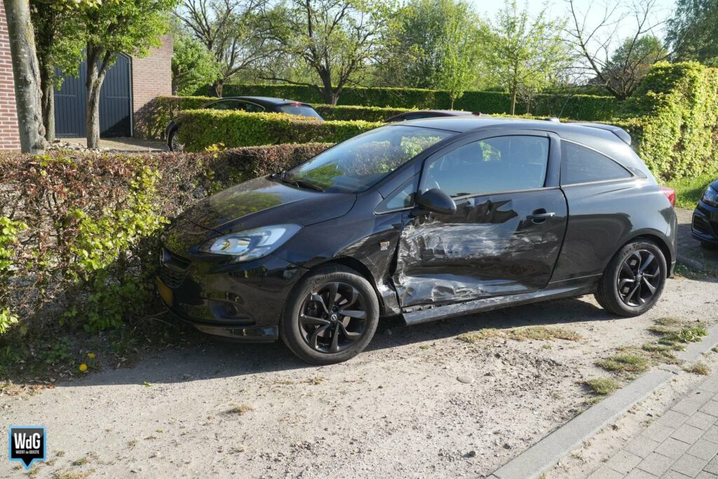 Door nog onbekende oorzaak botste één van de auto’s tegen de zijkant van de andere. De auto die in de flank werd geraakt, kwam uiteindelijk tot stilstand in een haag. De andere auto begon na de botsing te tollen en kwam tegen een lantaarnpaal en deels in een greppel tot stilstand.