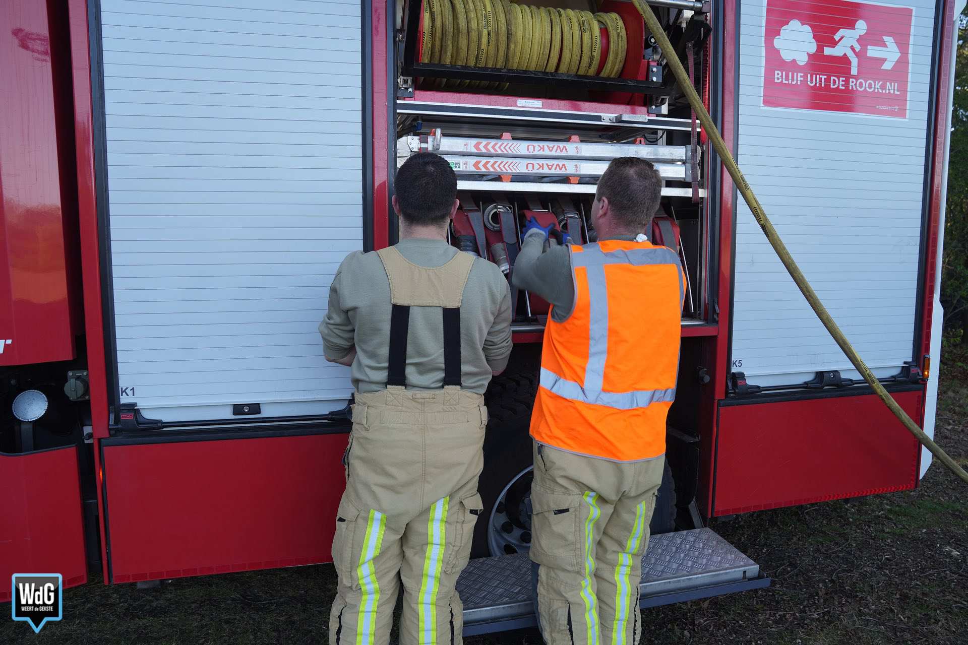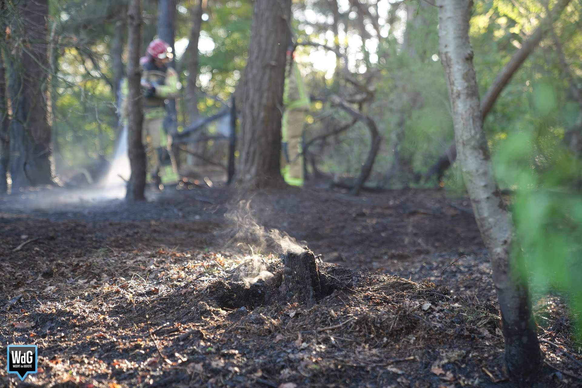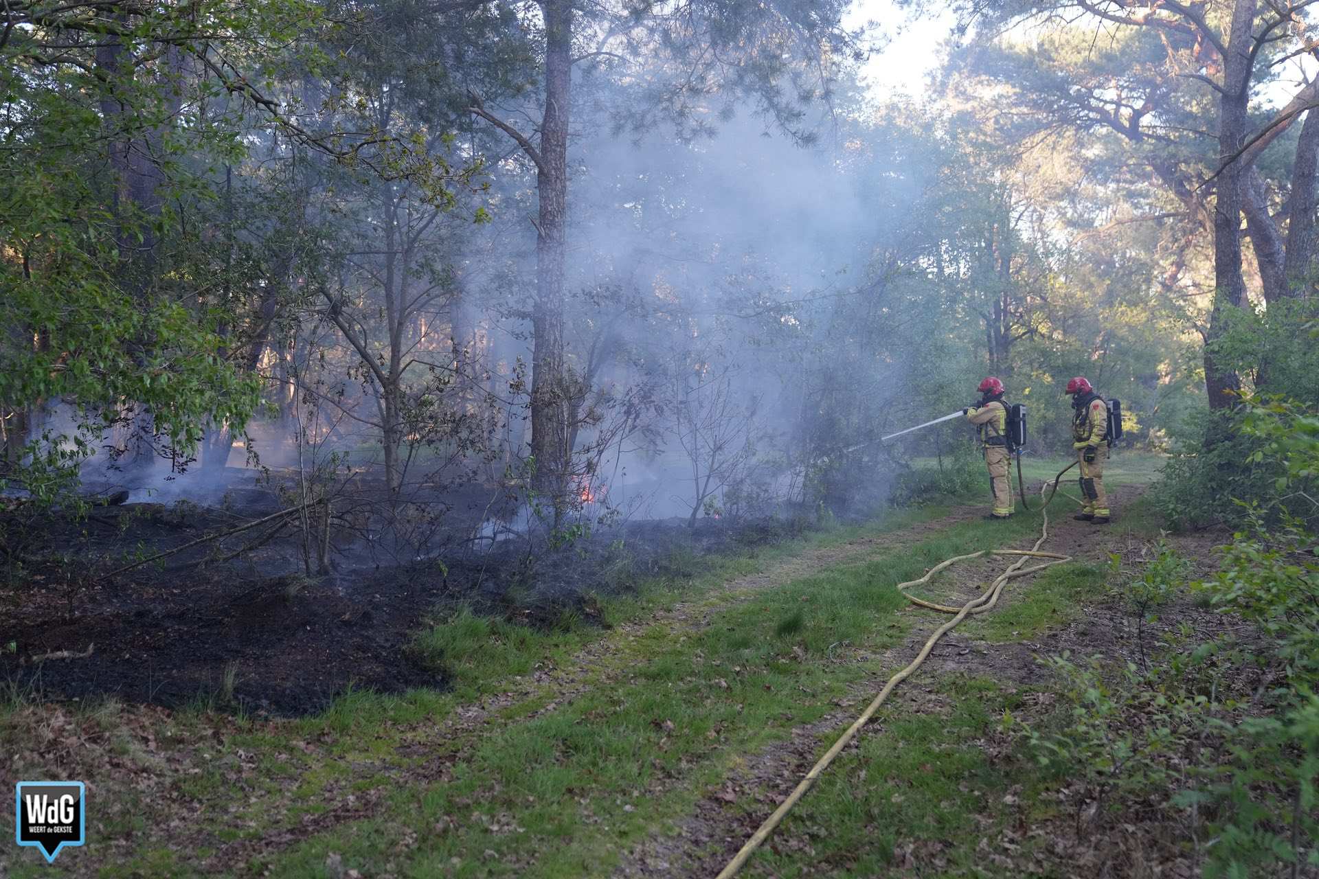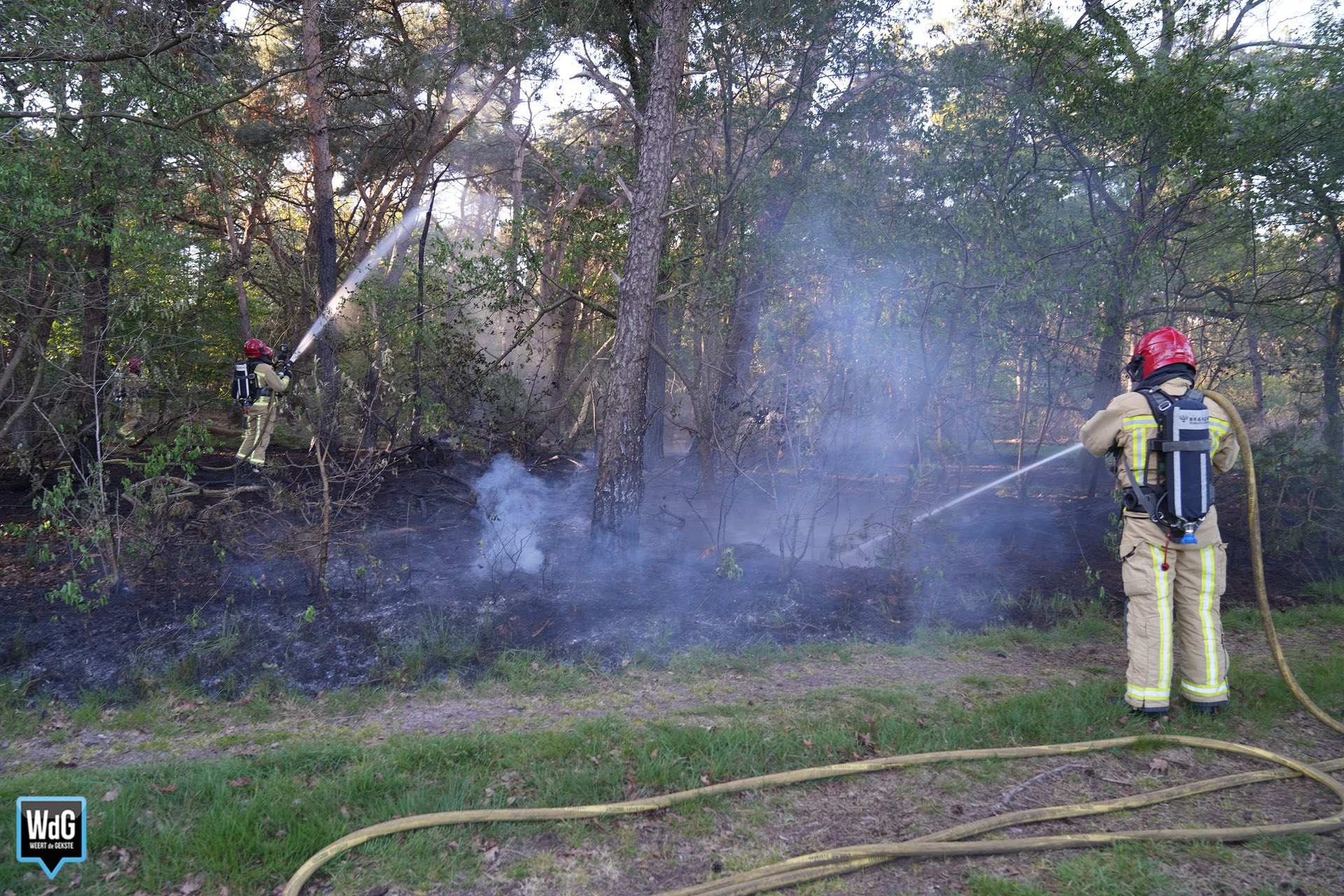 De brand was snel onder controle. Daarna hielden de brandweerlieden zich nog enige tijd bezig met het natmaken van de grond, om oplaaiing te voorkomen.