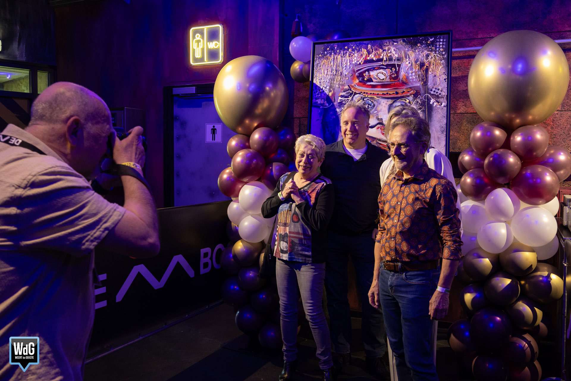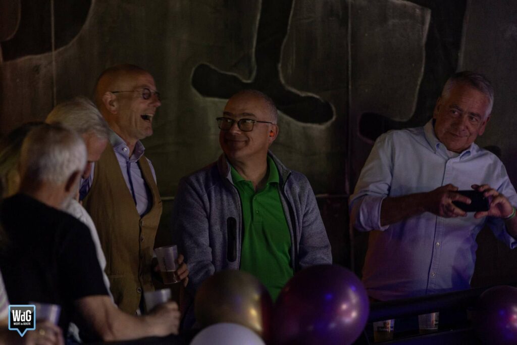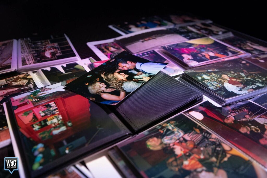 Bij binnenkomst werden de gasten meteen zelf in de schijnwerper gezet. Wie dat wilde kon op de foto als blijvende herinnering aan deze bijzondere reünie. Op een tafel lagen talloze foto’s van vroeger waar bezoekers doorheen konden bladeren op zoek naar bekende gezichten. Daarnaast werden er foto’s geprojecteerd op de muur waardoor iedereen, ook vanaf een afstandje, ondergedompeld werd in oude herinneringen.