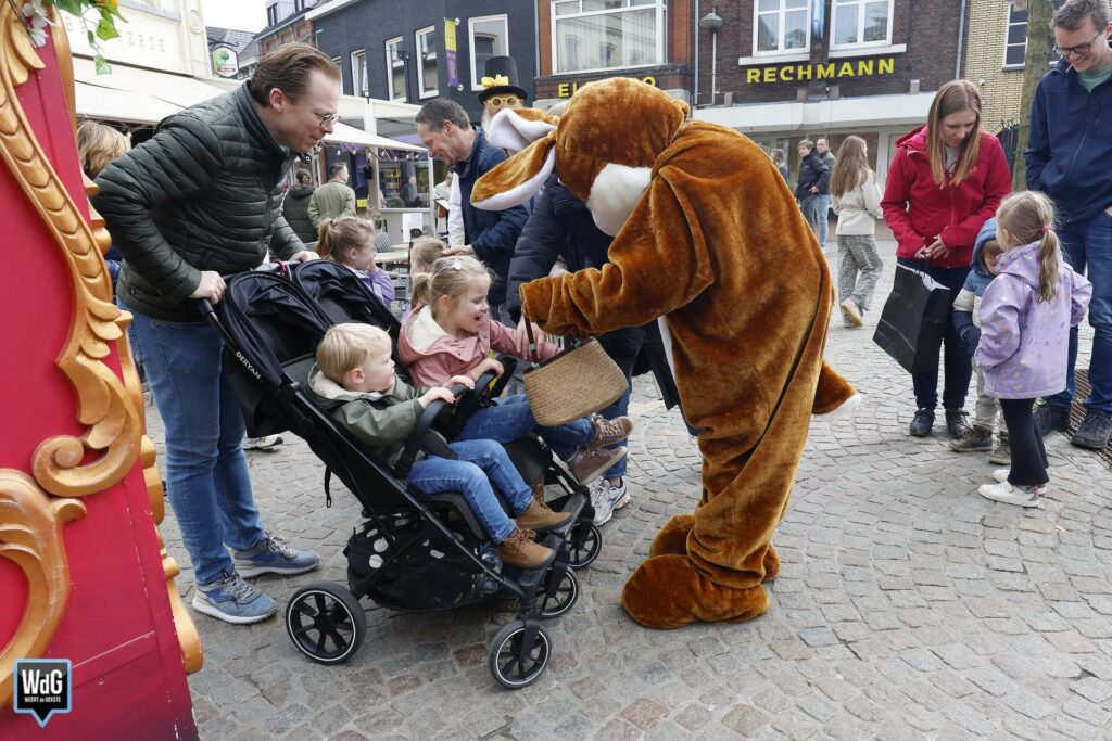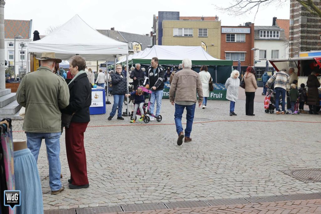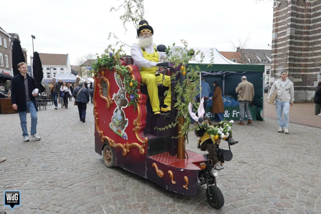 De weekmarkt in de binnenstad van Weert stond zaterdag volledig in het teken van de paassfeer. Met een gezellige drukte, volle terrassen en volop activiteiten trok het centrum veel bezoekers die genoten van de gezelligheid.