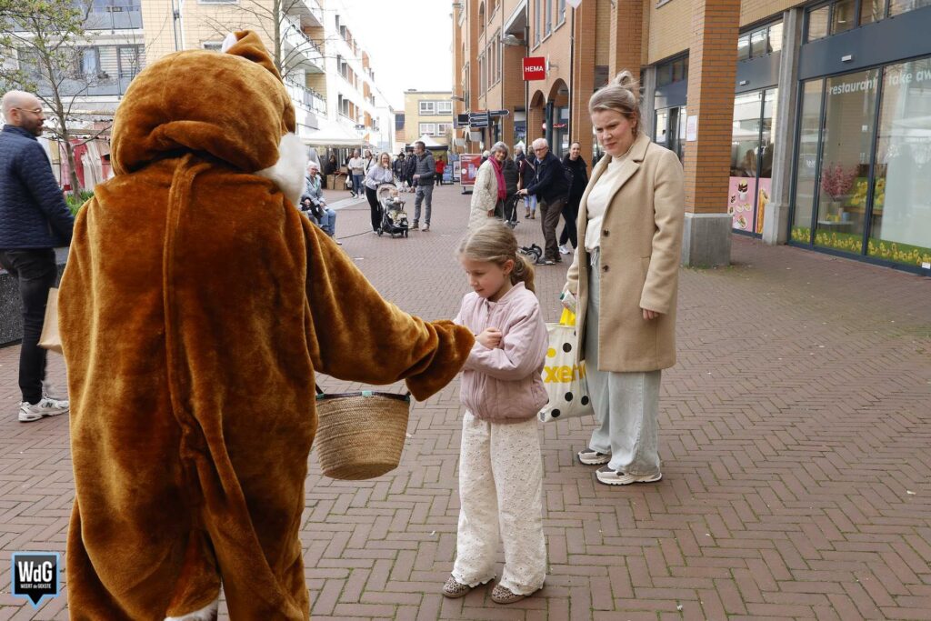 Dat Pasen naderde was duidelijk merkbaar in de binnenstad. Zo werden er meerdere paashazen gespot die door het centrum trokken en paaseitjes uitdeelden aan het winkelend publiek. Daarnaast zorgde een bijzondere verschijning, een paashaas in een rijdend muziekorgel, voor bekijks. Vooral kinderen konden hun hart ophalen, onder meer in de Muntpassage waar zij zich konden laten schminken, glittertattoos konden laten zetten en ballonnen kregen in lentethema.
