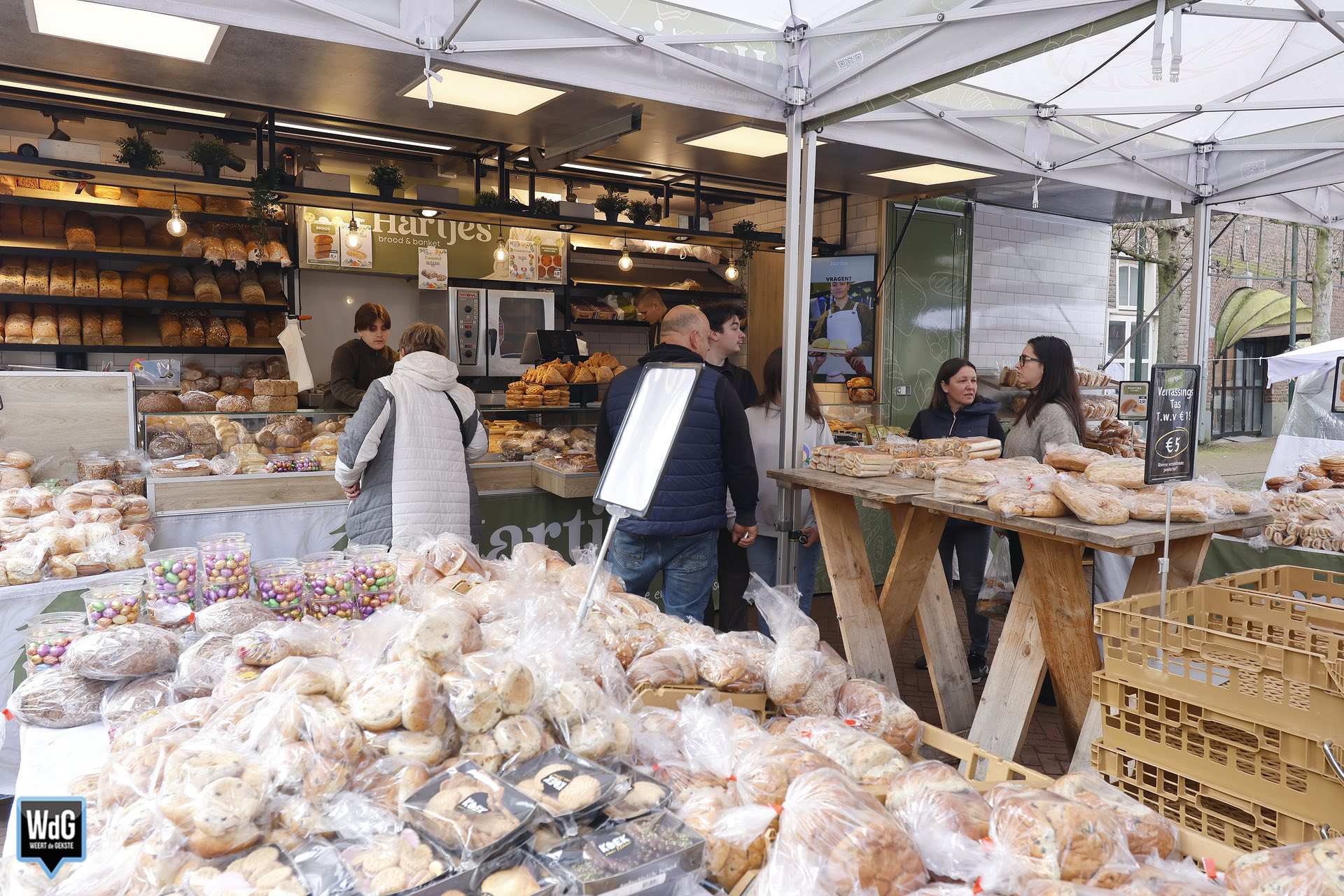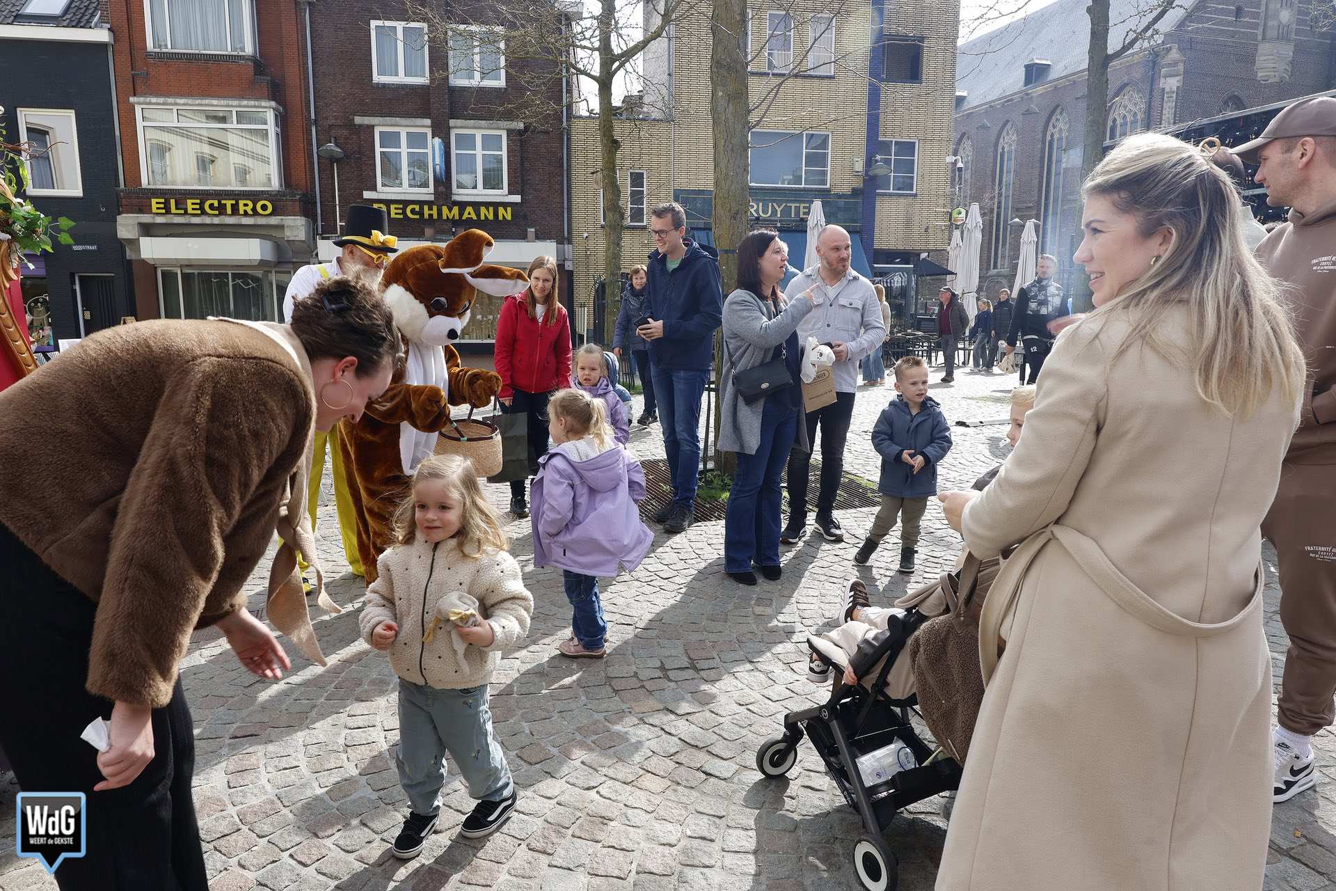 De weekmarkt in de binnenstad van Weert stond zaterdag volledig in het teken van de paassfeer. Met een gezellige drukte, volle terrassen en volop activiteiten trok het centrum veel bezoekers die genoten van de gezelligheid.