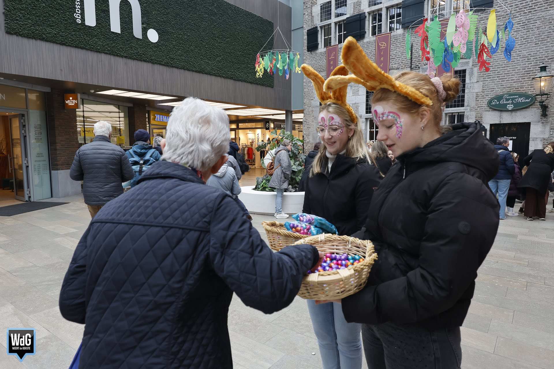 Dat Pasen naderde was duidelijk merkbaar in de binnenstad. Zo werden er meerdere paashazen gespot die door het centrum trokken en paaseitjes uitdeelden aan het winkelend publiek. Daarnaast zorgde een bijzondere verschijning, een paashaas in een rijdend muziekorgel, voor bekijks. Vooral kinderen konden hun hart ophalen, onder meer in de Muntpassage waar zij zich konden laten schminken, glittertattoos konden laten zetten en ballonnen kregen in lentethema.