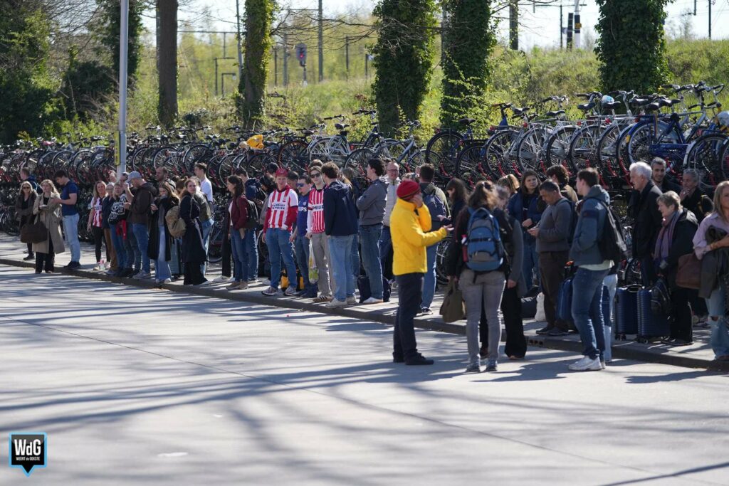 Lichte stress, maar uiteindelijk wel opgeluchte gezichten bij de PSV-fans uit Limburg dinsdag. Het treinverkeer tussen Eindhoven en Weert lag stil na een aanrijding op het spoor bij Geldrop, waardoor supporters die richting Eindhoven wilden vertraging opliepen. Weert was daardoor voor reizigers uit Limburg het tijdelijke ‘eindstation’.
