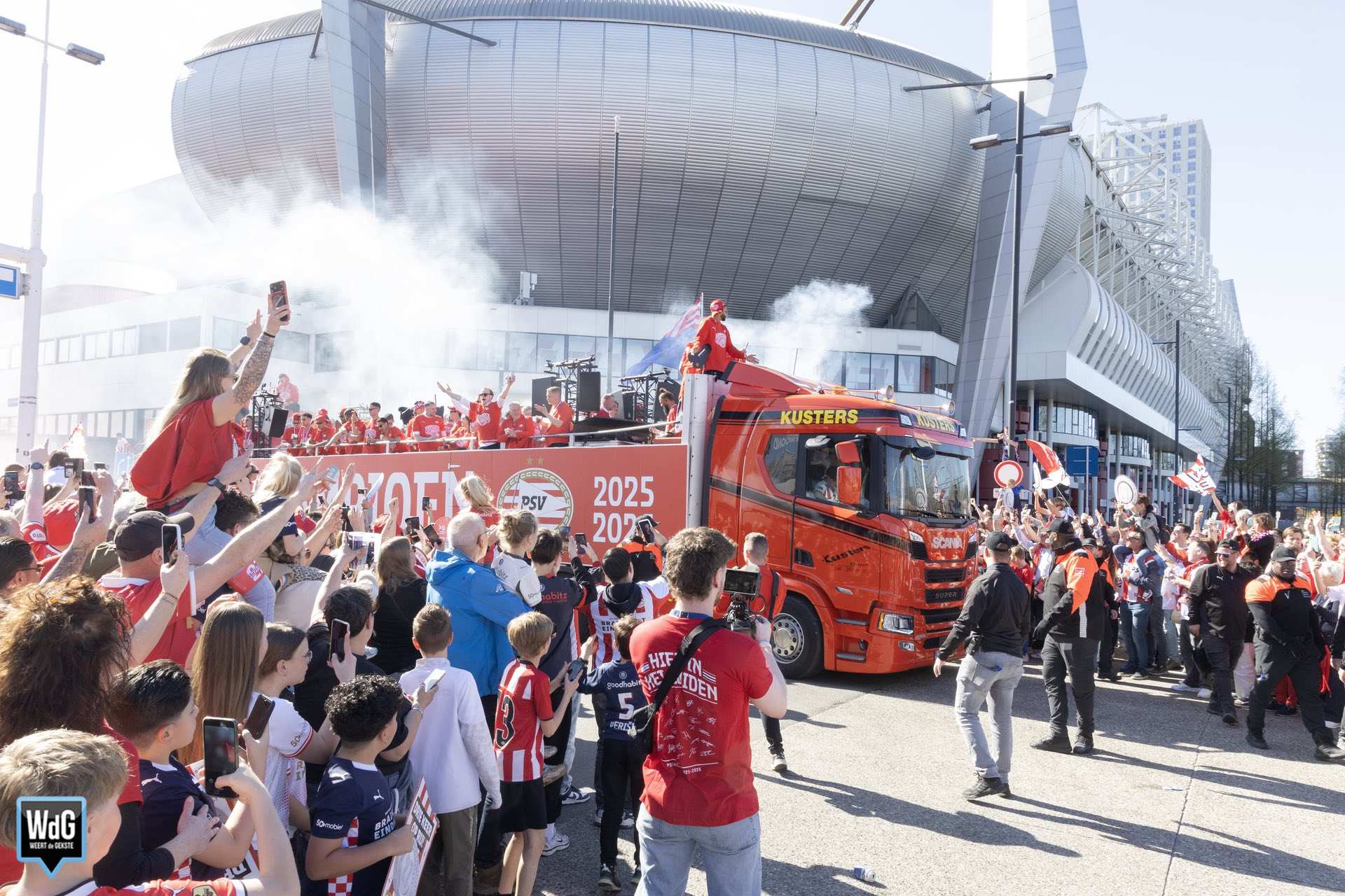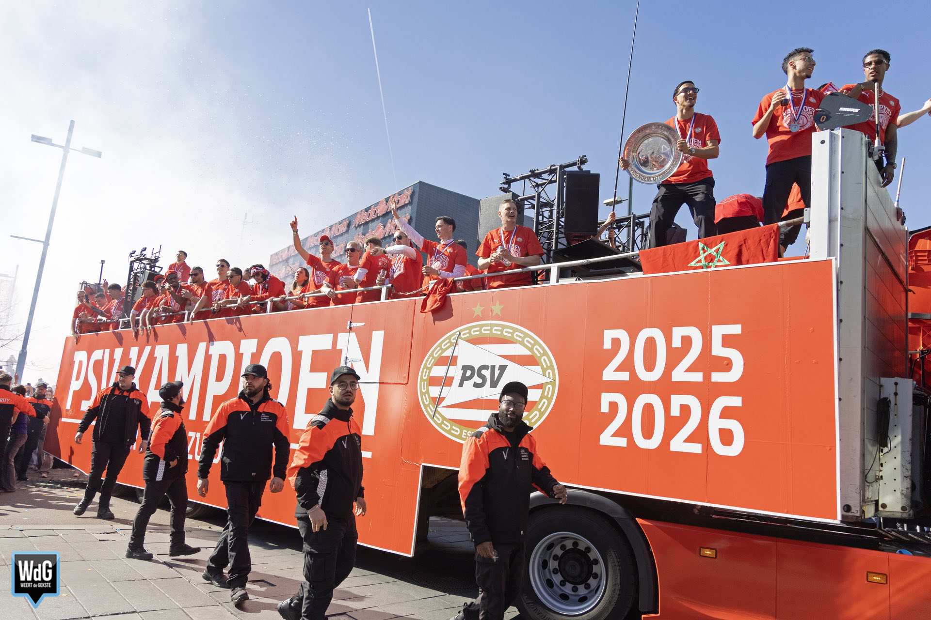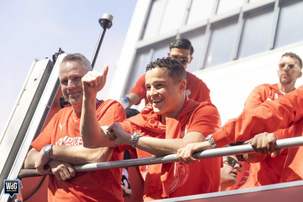 Een bijzonder detail met een Weerter tintje: de cabriobus van Kupers Touringcars reed mee in de feeststoet. Deze open bus maakte een rondrit door de stad, langs uitzinnige supporters die de kampioenen toejuichten. Voor het Weerter bedrijf was het een mooie en zichtbare rol tijdens een van de grootste sportfeesten van het jaar.