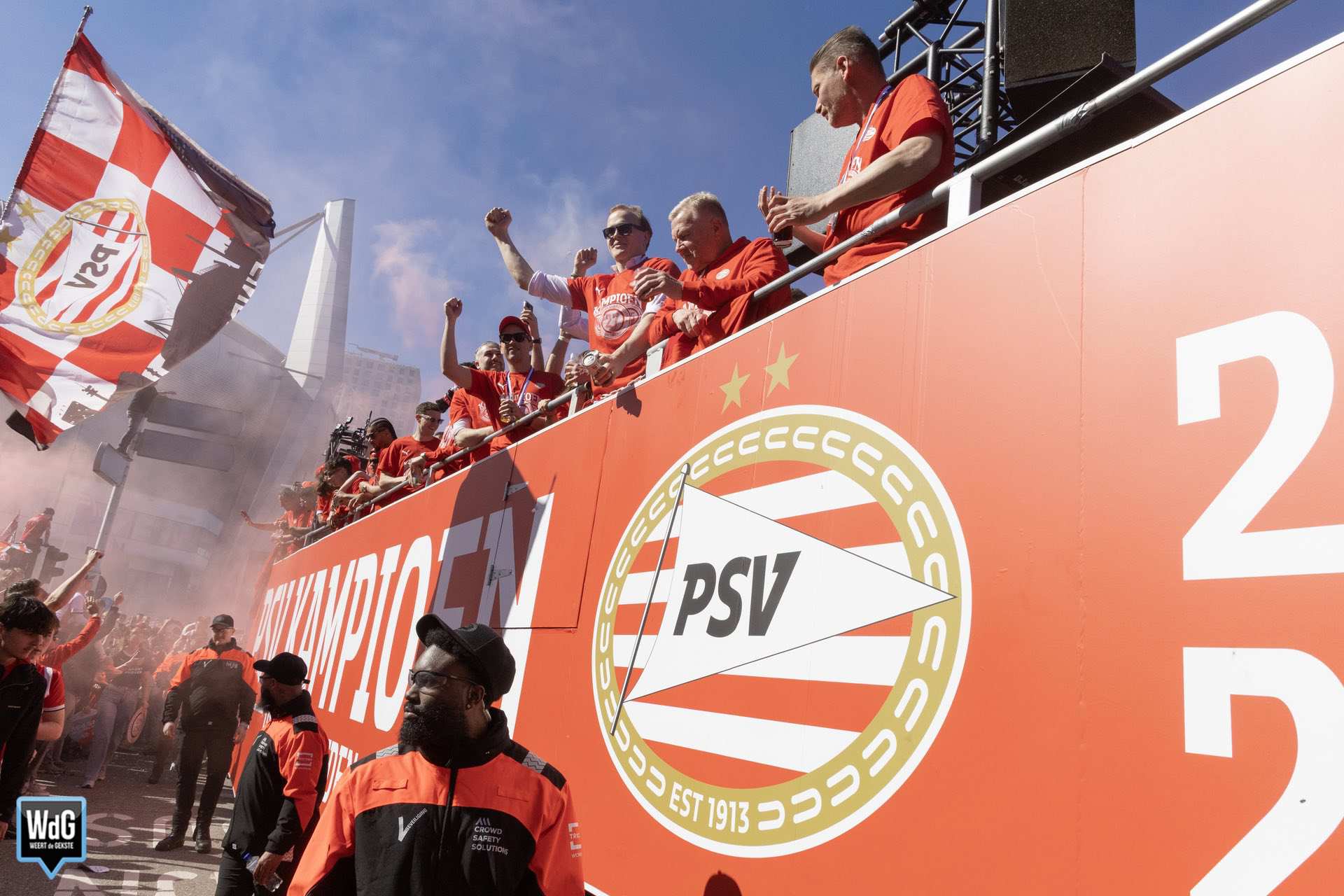 Onder een stralende lentezon is PSV dinsdag feestelijk gehuldigd voor het behaalde landskampioenschap. In het centrum van Eindhoven kleurde het rood-wit en verzamelden zich duizenden supporters voor een uitbundige viering. Tussen al dat feestgedruis waren ook veel Weertenaren aanwezig.