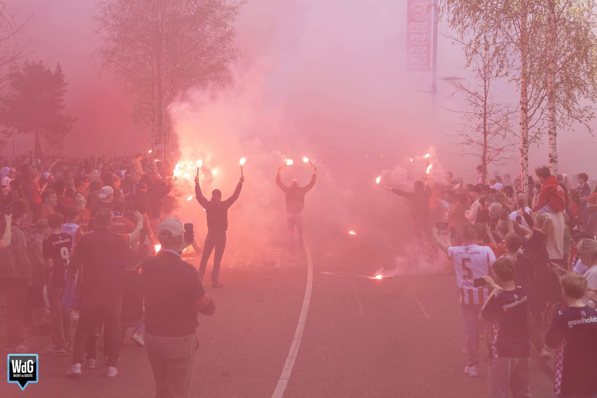 Langs de route en op pleinen als het Stadhuisplein en 18 Septemberplein stonden rijen dik supporters opgesteld. Ook veel fans uit Weert en omgeving reisden, met enige vertraging, af naar Eindhoven om het moment van dichtbij mee te maken.