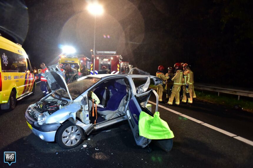 A2 tijdelijk dicht na aanrijding tussen twee personenauto’s